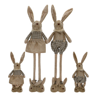Osterhasenpaar Mann Frau sitzend im Karodesign 12x30x6cm Polyester blau gelb Osterdekoration Hasenfigur Dekofigur