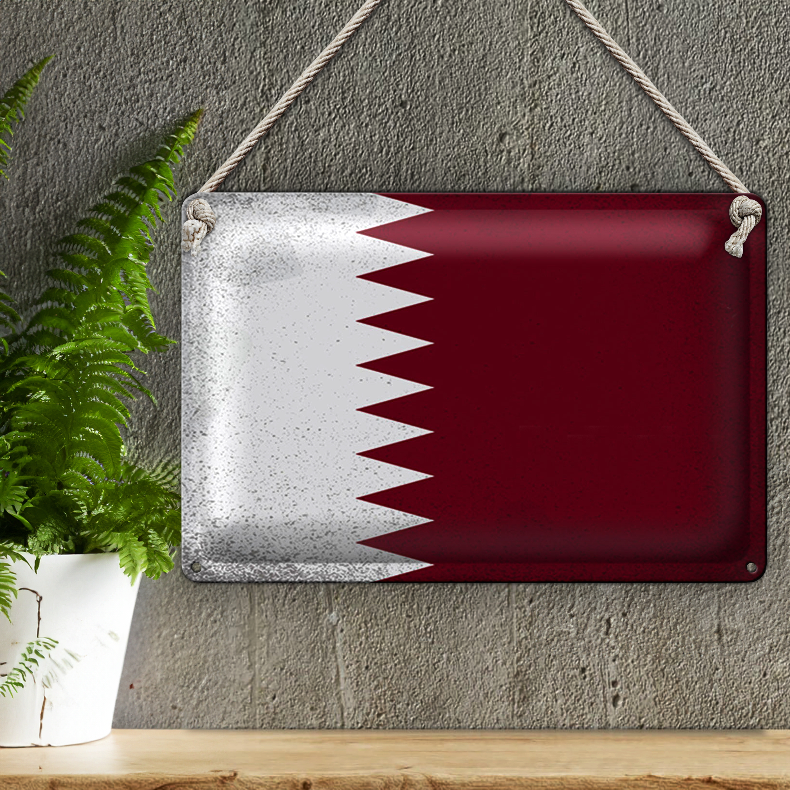 Blechschild Flagge Katar 30x20cm Flag of Qatar Vintage