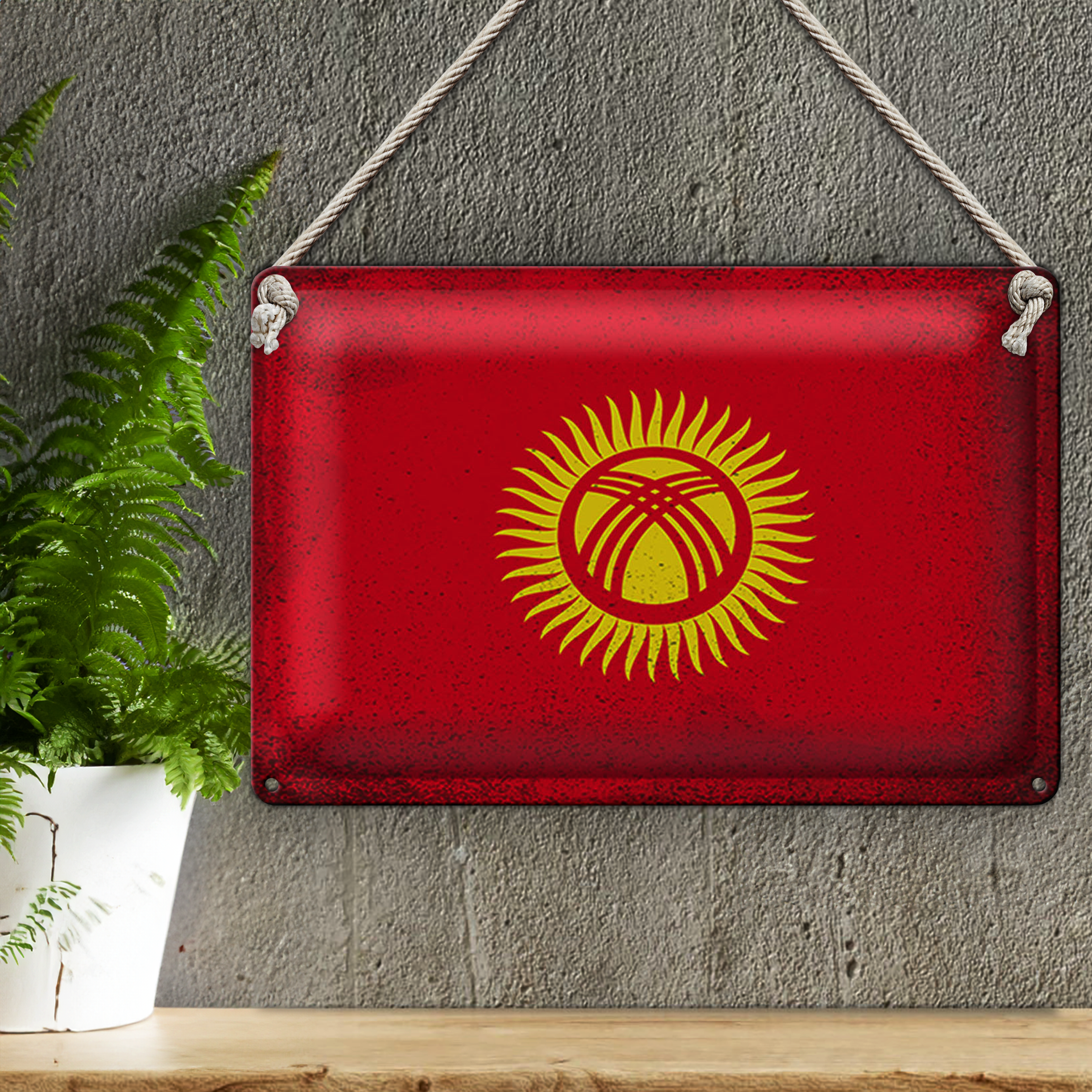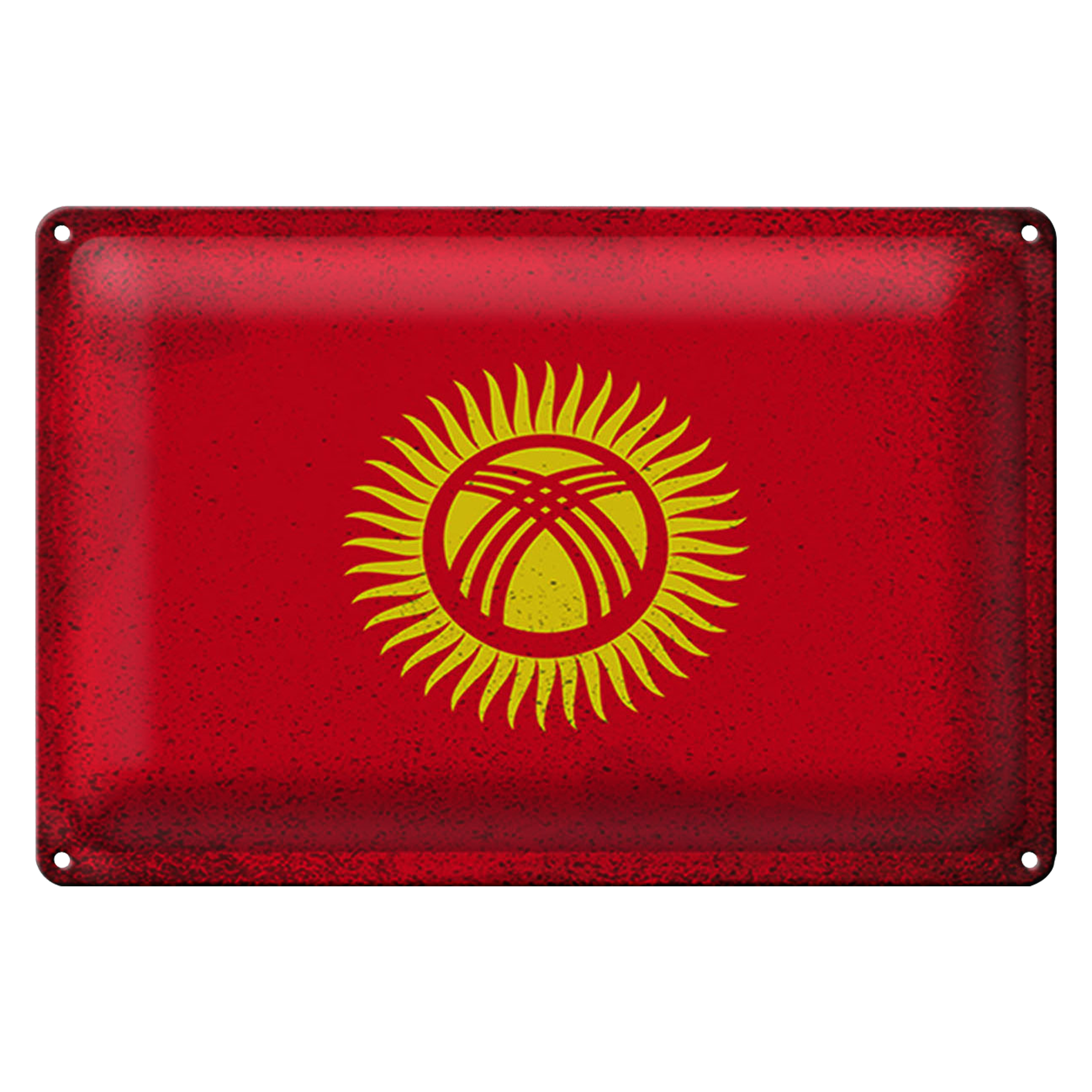 Blechschild Flagge Kirgisistan 30x20cm Kyrgyzstan Vintage