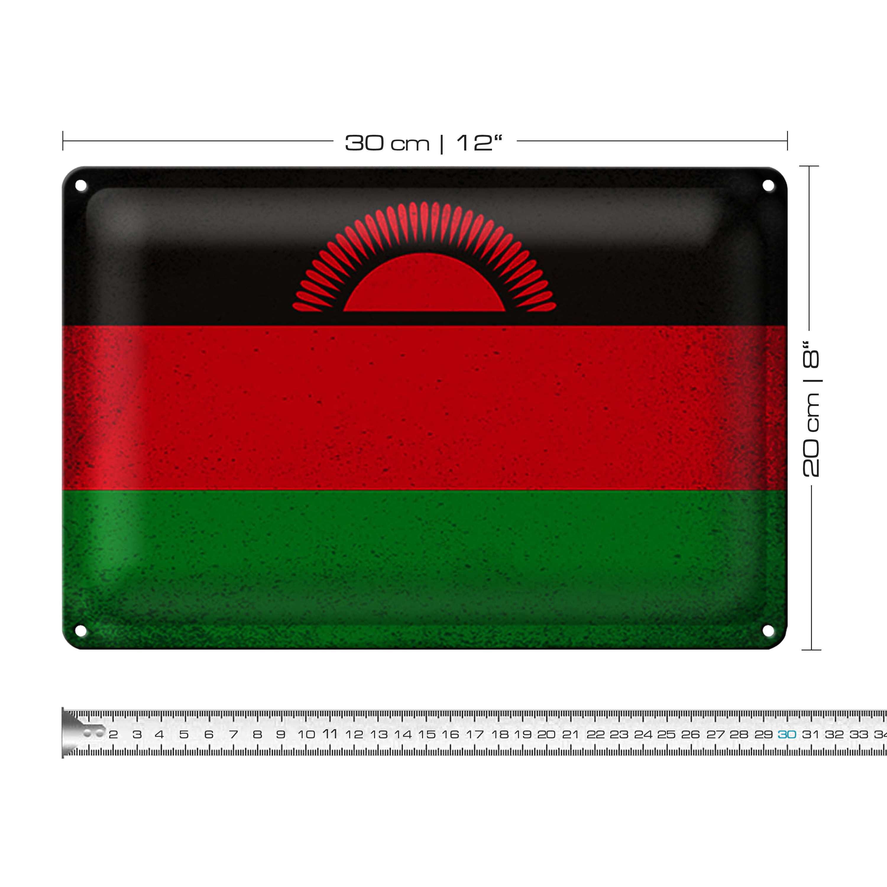 Blechschild Flagge Malawi 30x20cm Flag of Malawi Vintage