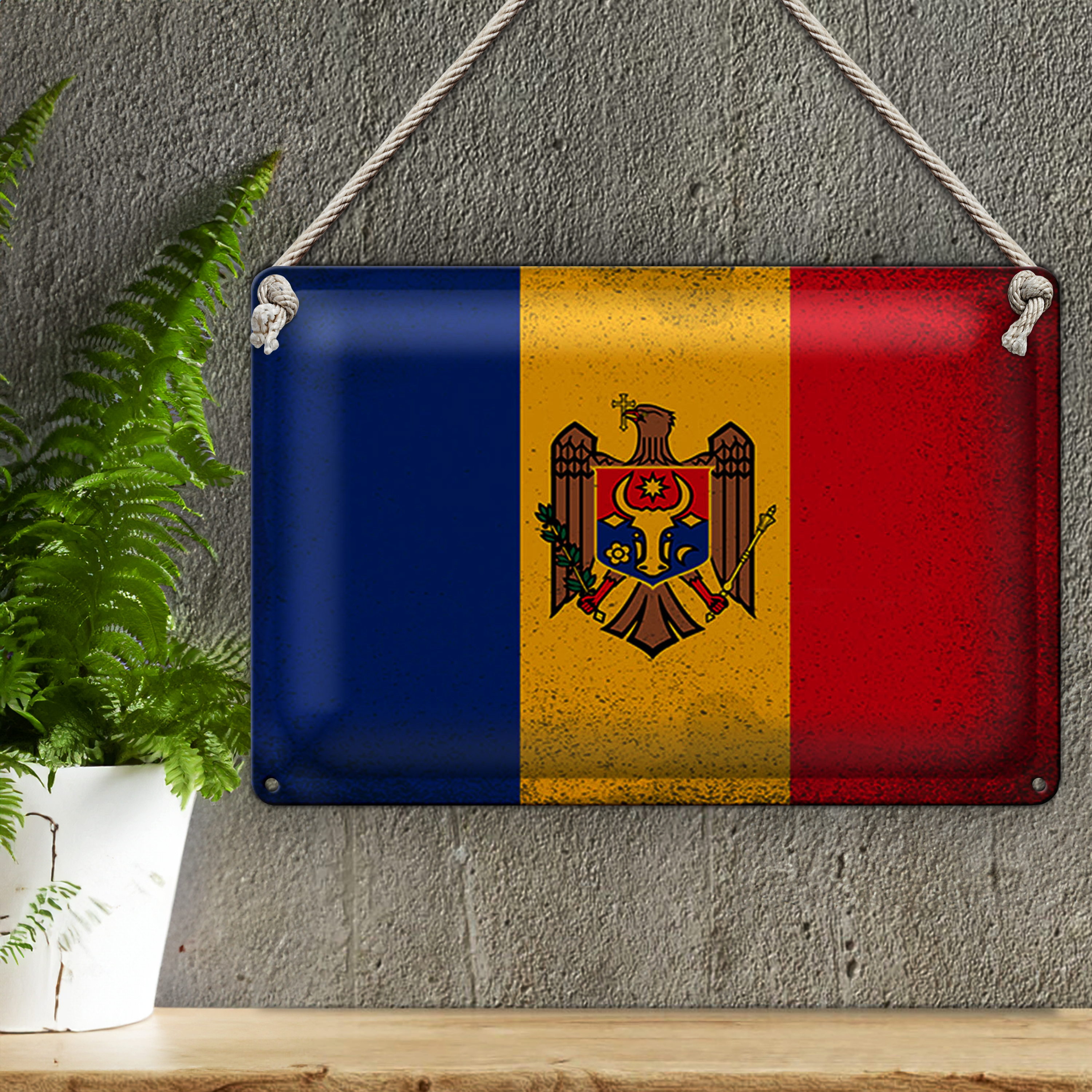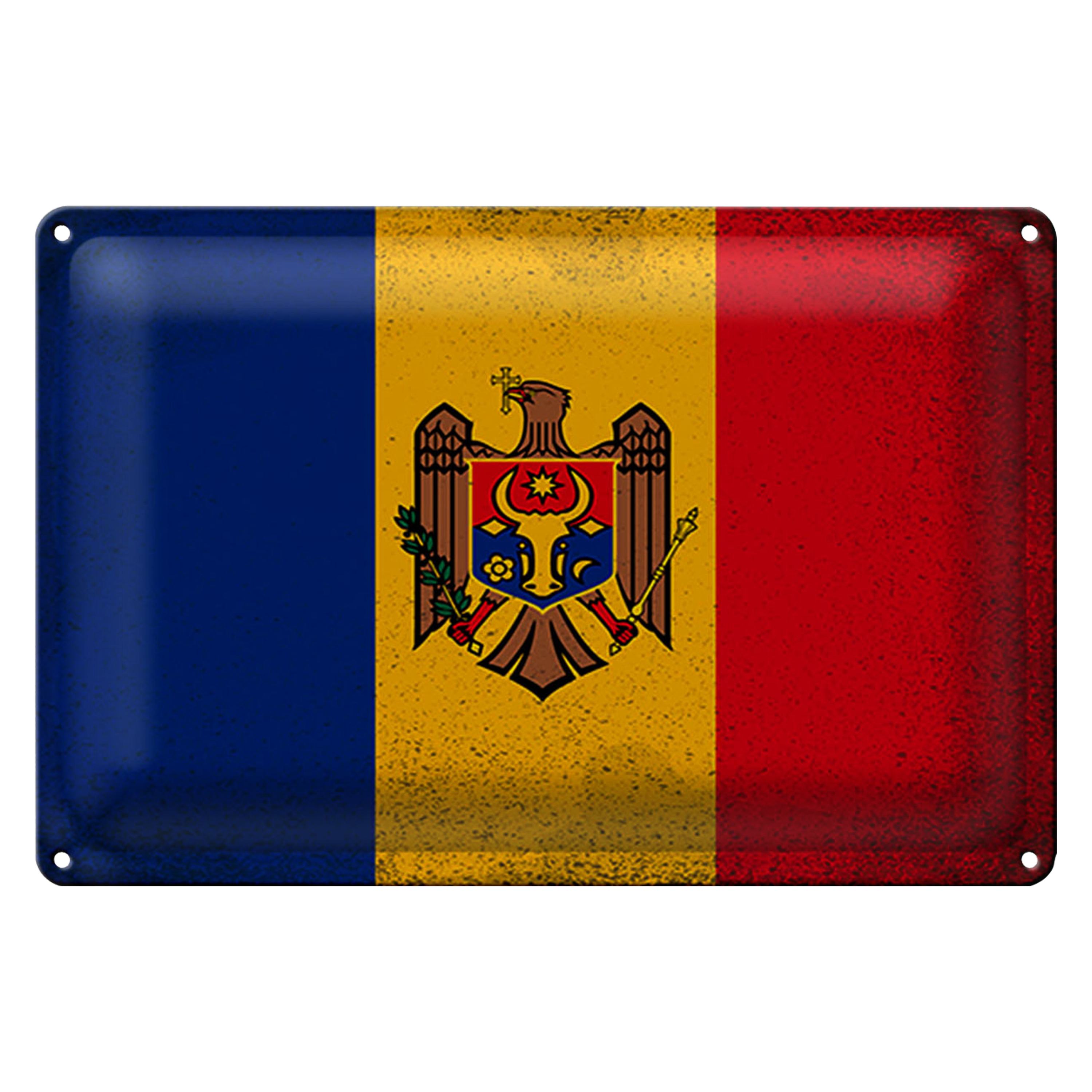 Blechschild Flagge Moldau 30x20cm Flag of Moldova Vintage