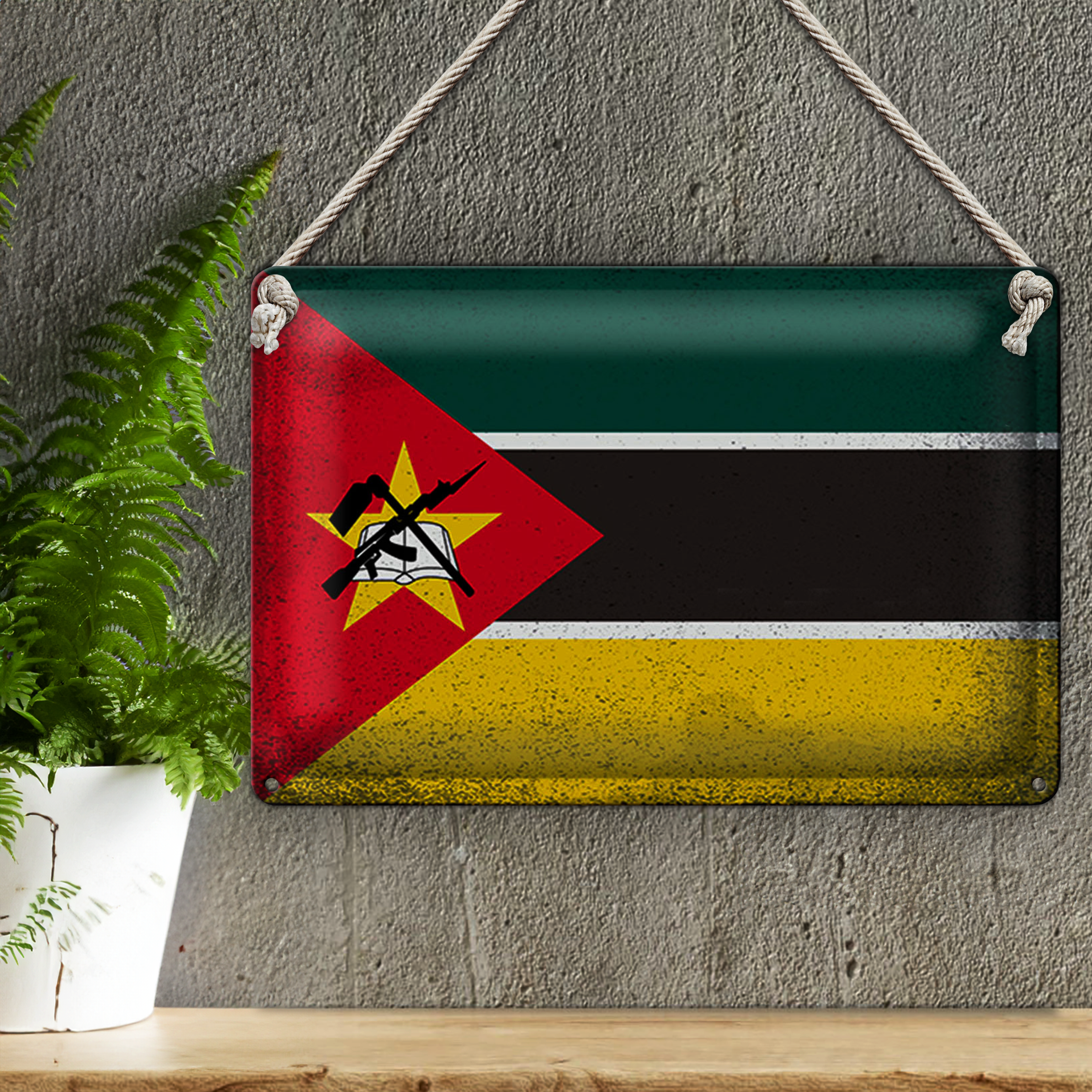 Blechschild Flagge Mosambik 30x20cm Flag Mozambique Vintage