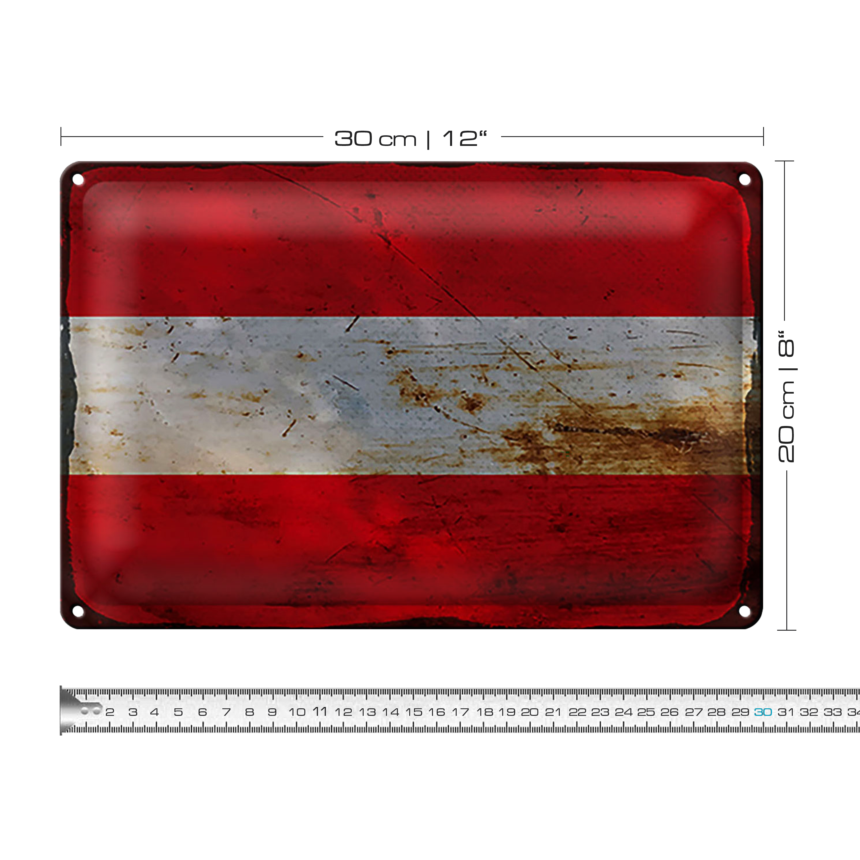 Blechschild Flagge Österreich 30x20cm Flag of Austria Rost