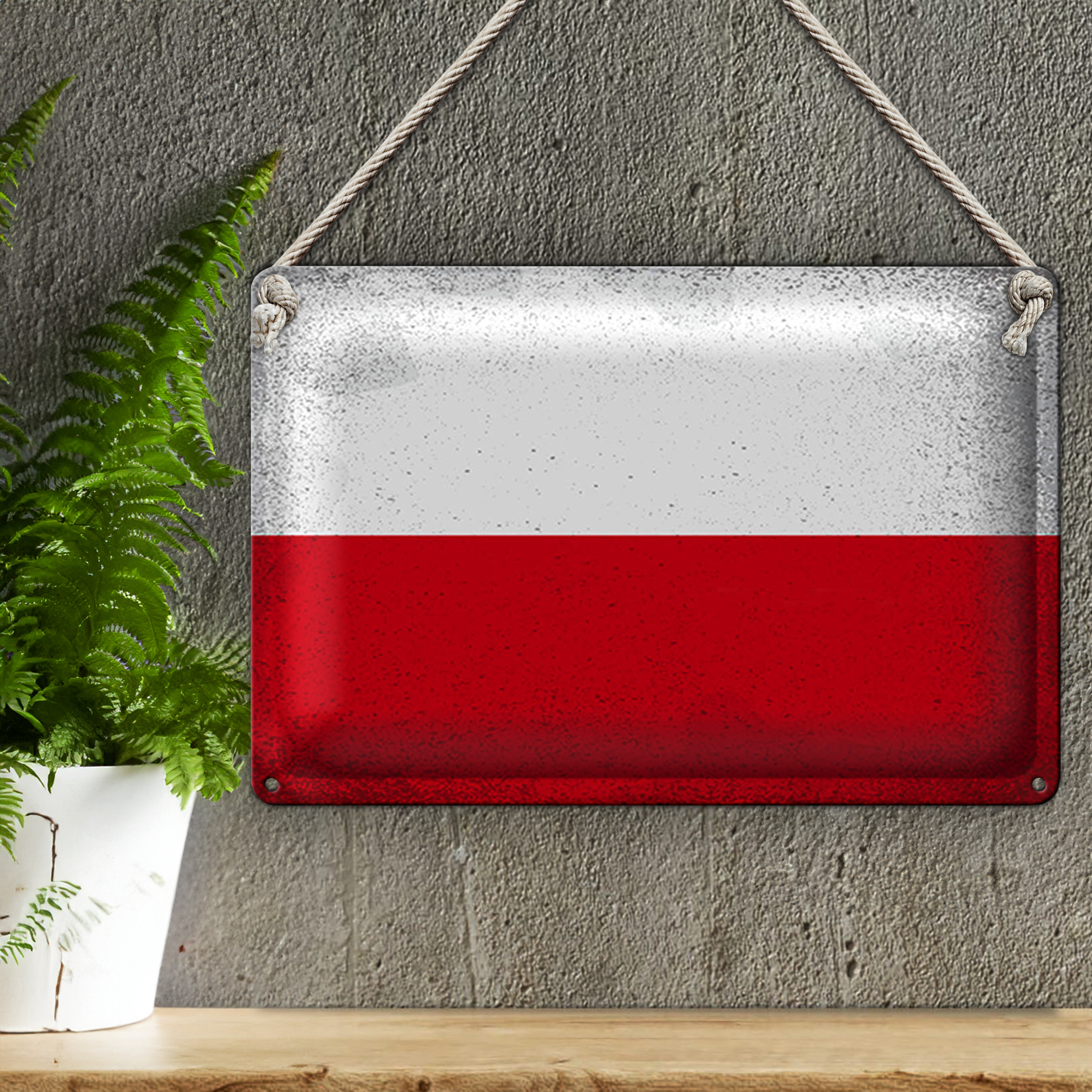 Blechschild Flagge Polen 30x20cm Flag of Poland Vintage
