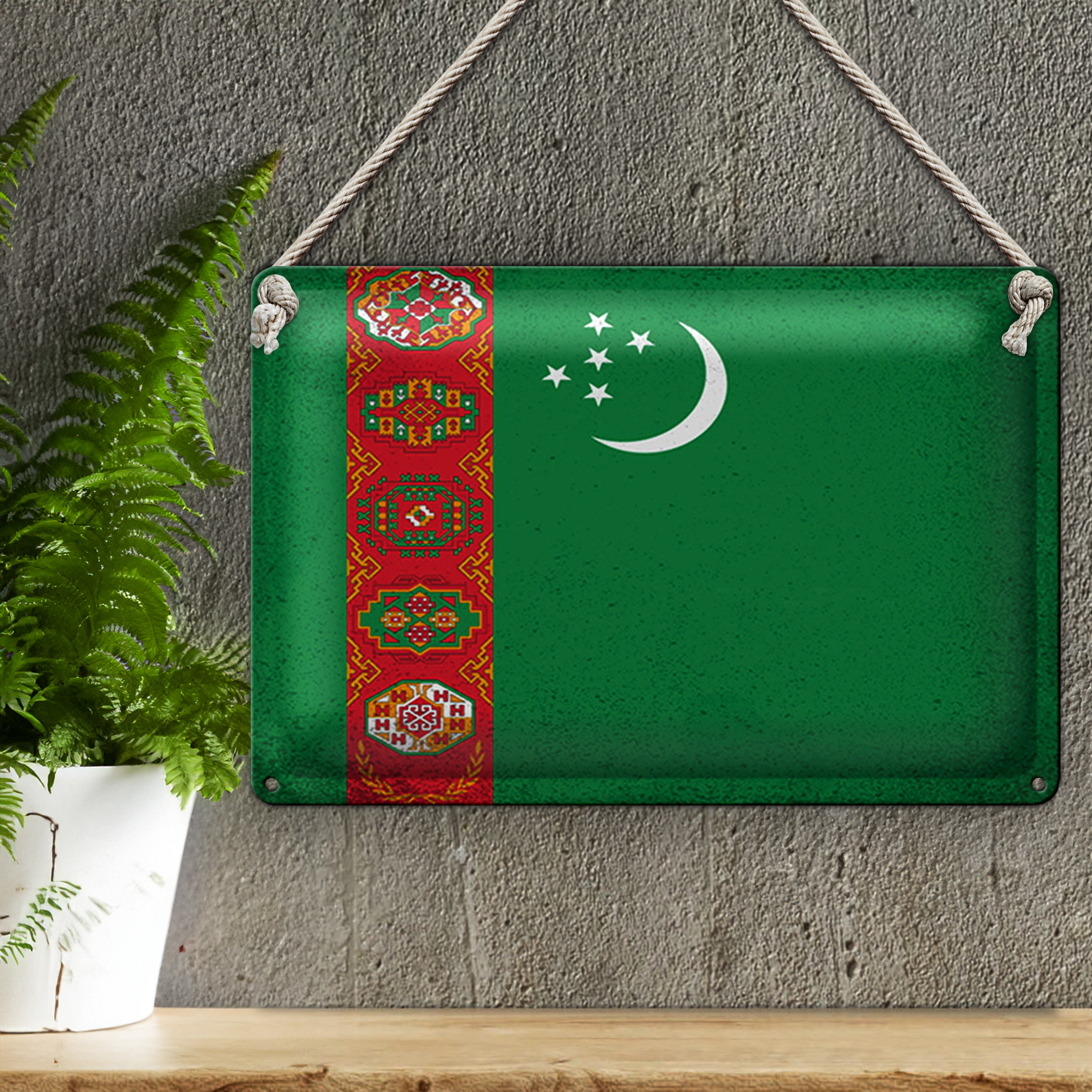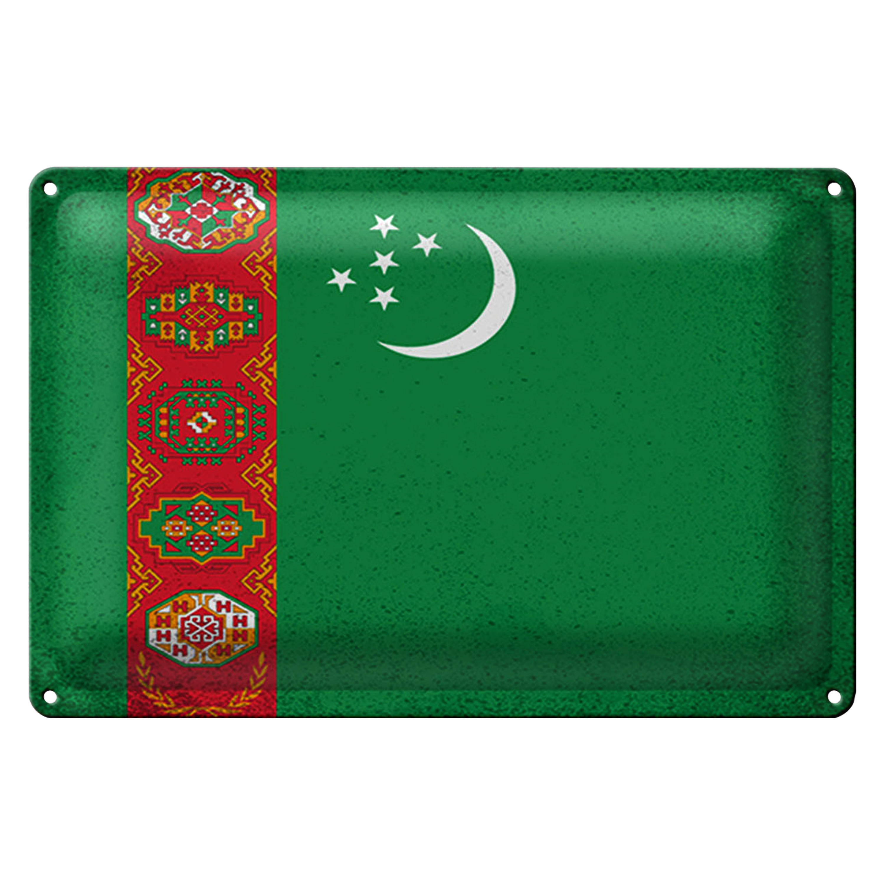 Blechschild Flagge Turkmenistan 30x20cm Flag Vintage