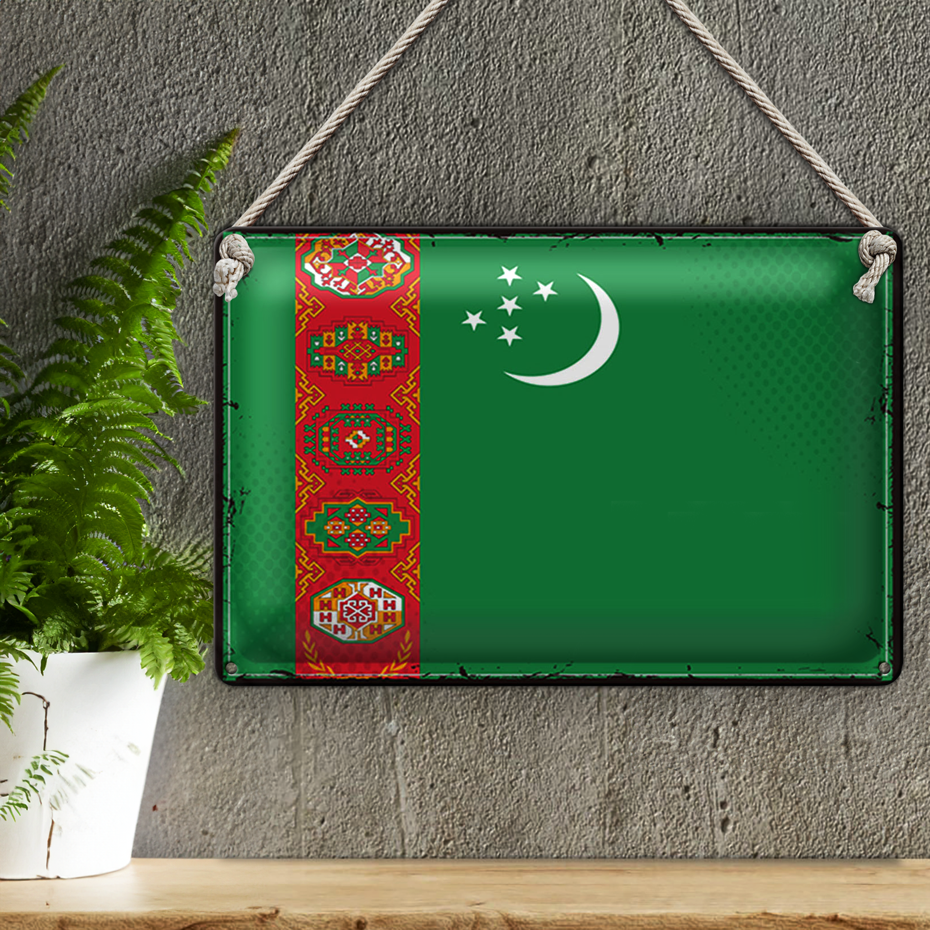 Blechschild Flagge Turkmenistan 30x20cm Retro Turkmenistan