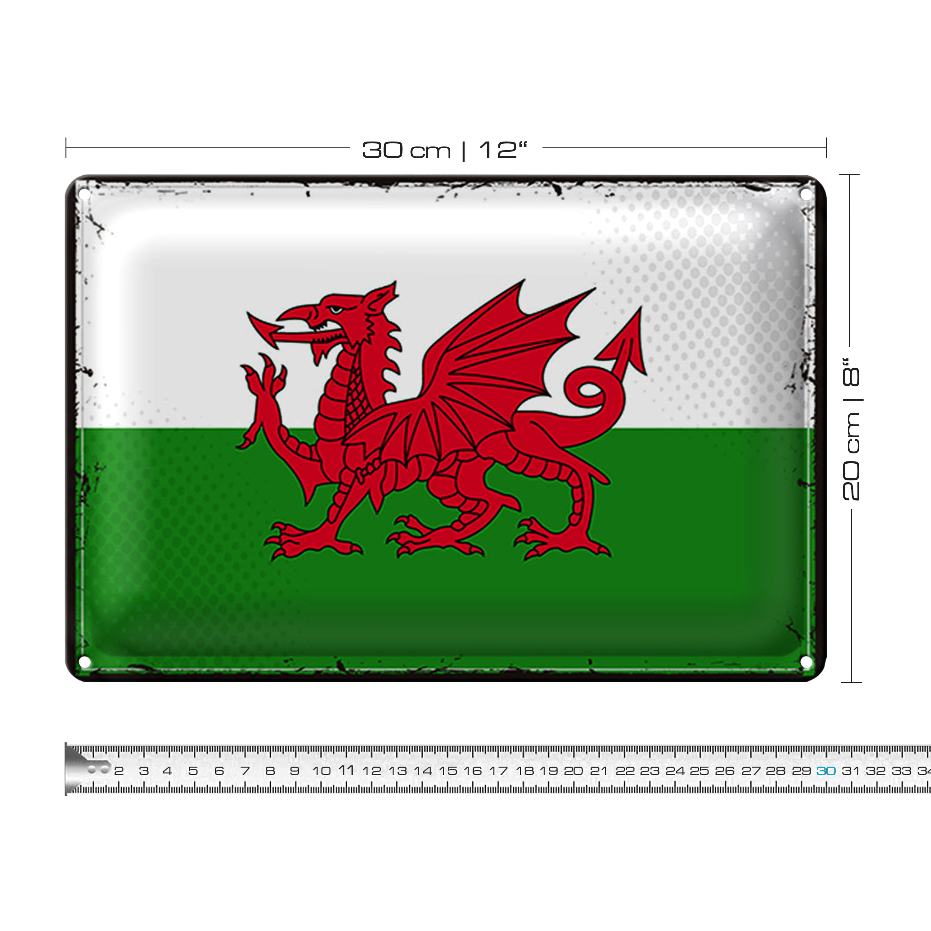 Blechschild Flagge Wales 30x20cm Retro Flag of Wales