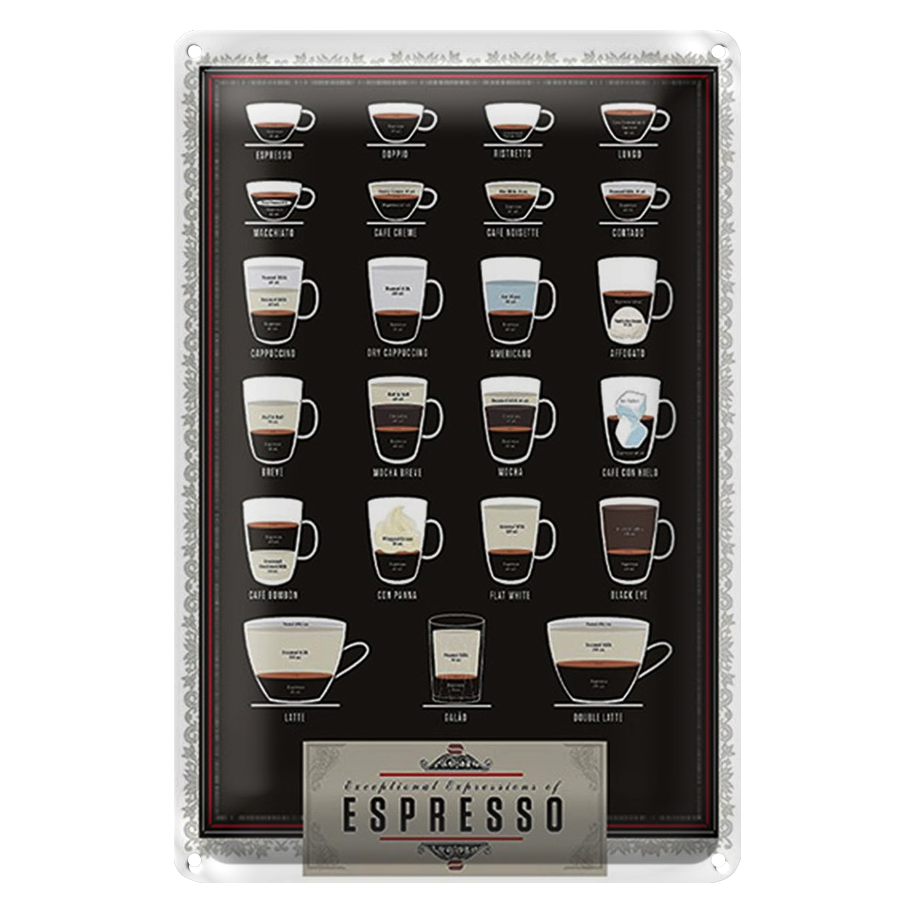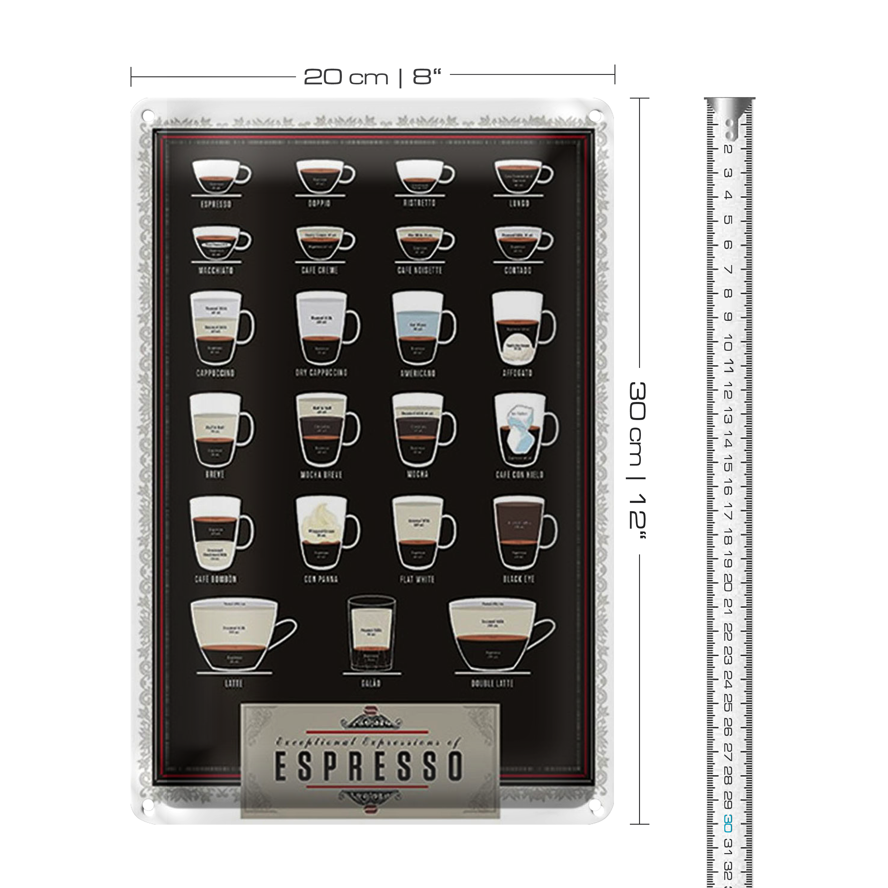 Blechschild Kaffee 20x30cm Sorten Espresso Mocha Americano