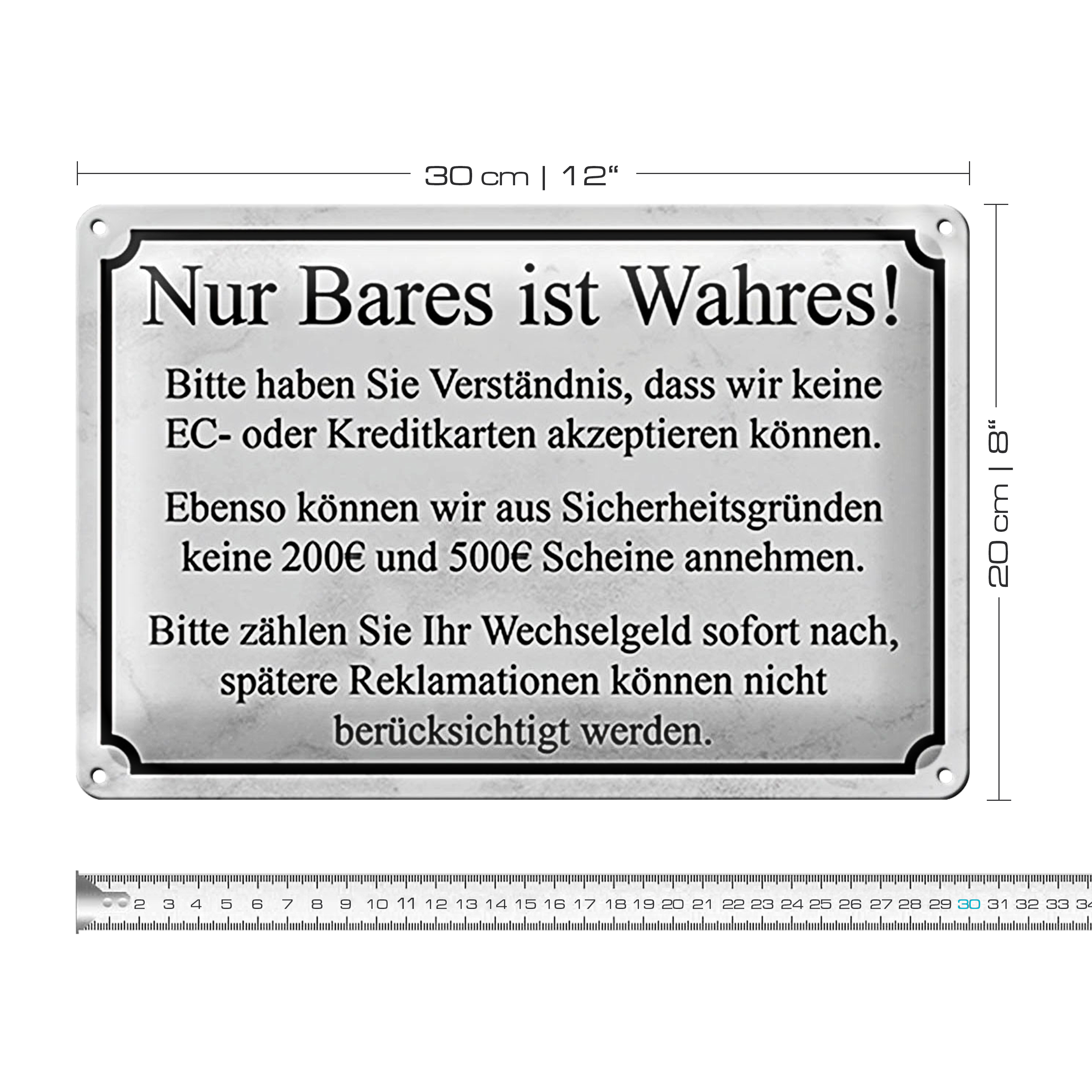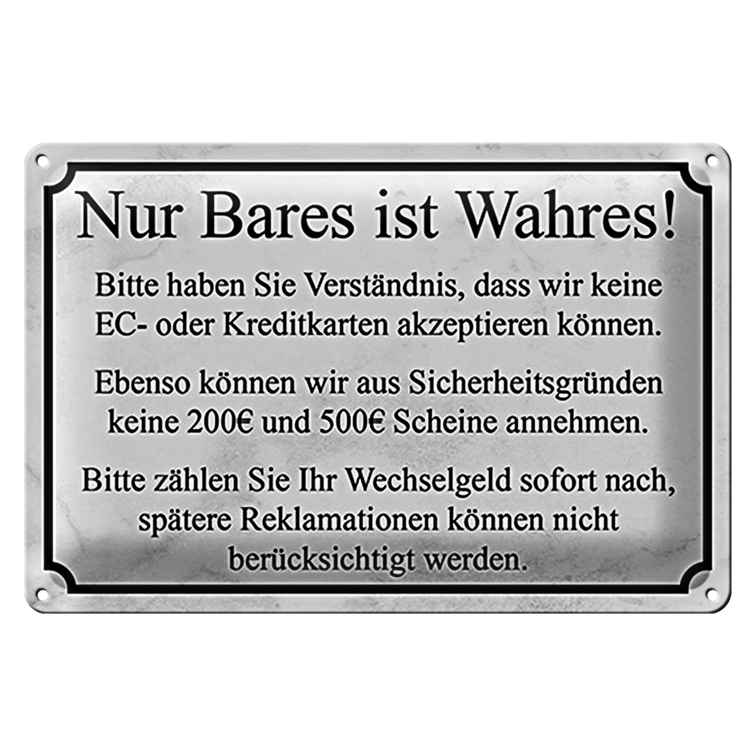 Blechschild kein Kreditkarten 30x20cm Nur Bares ist Wahres