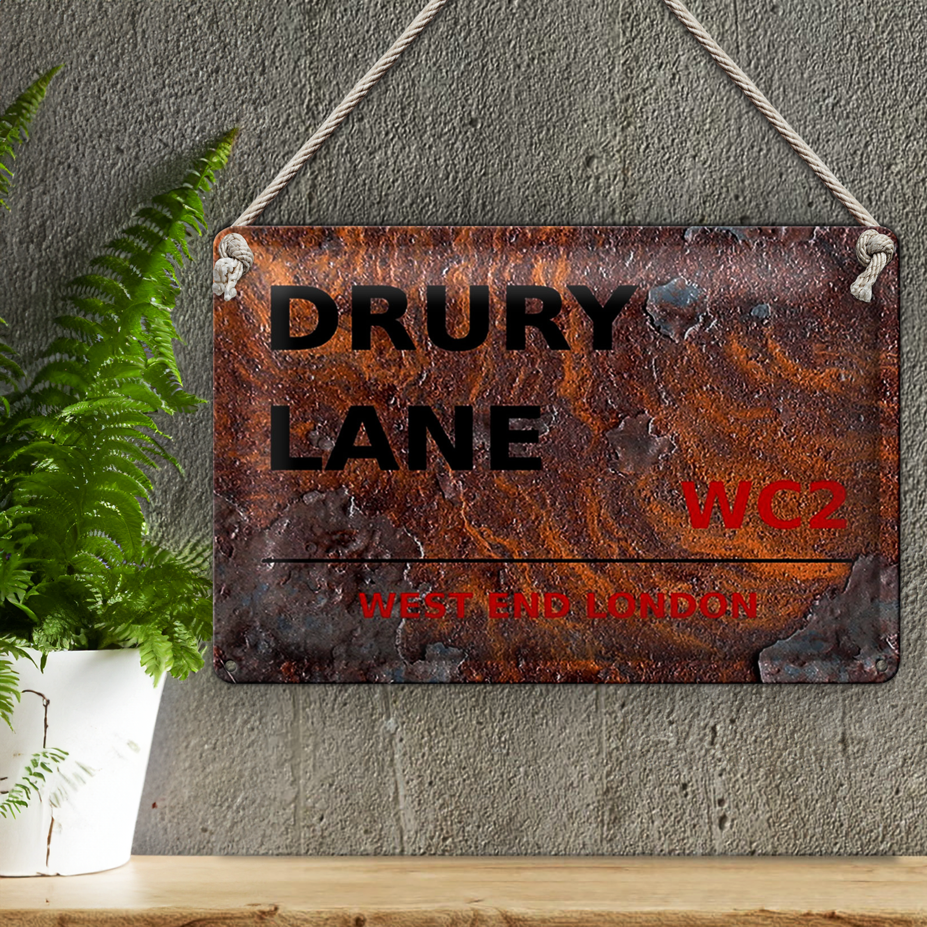 Blechschild London 30x20cm west end Drury Lane WC2 Rost