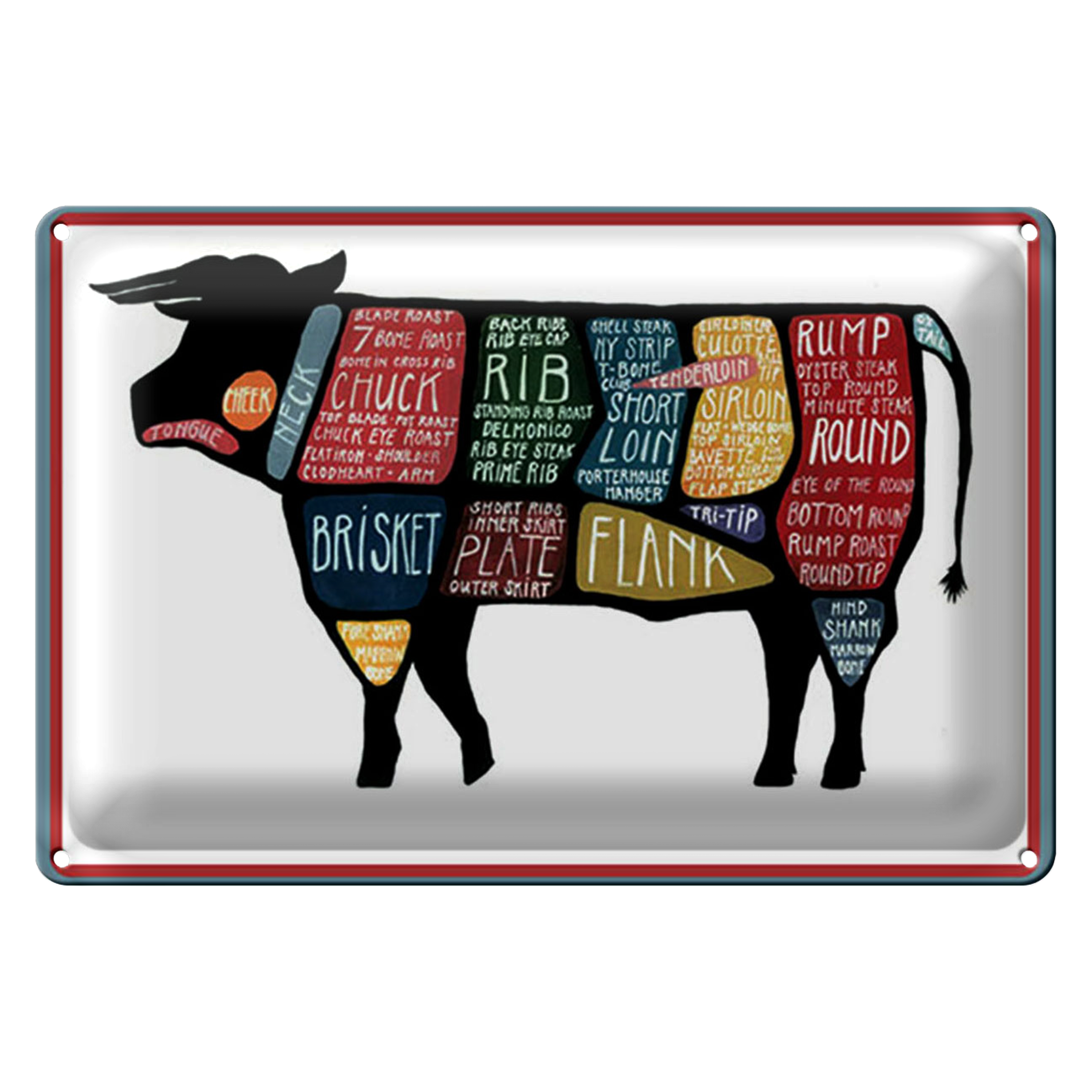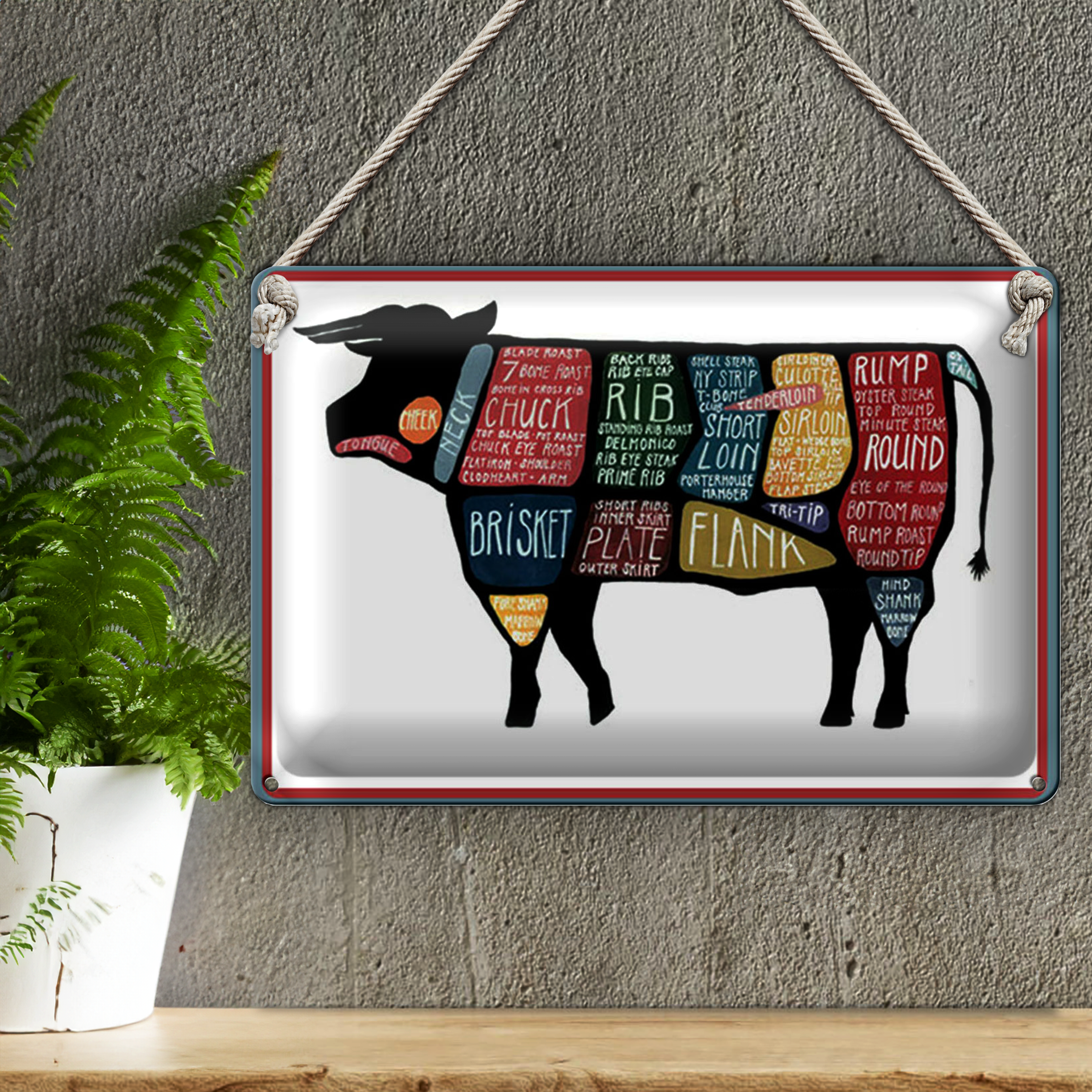 Blechschild Metzger 30x20cm Kuh Beef cuts Fleisch