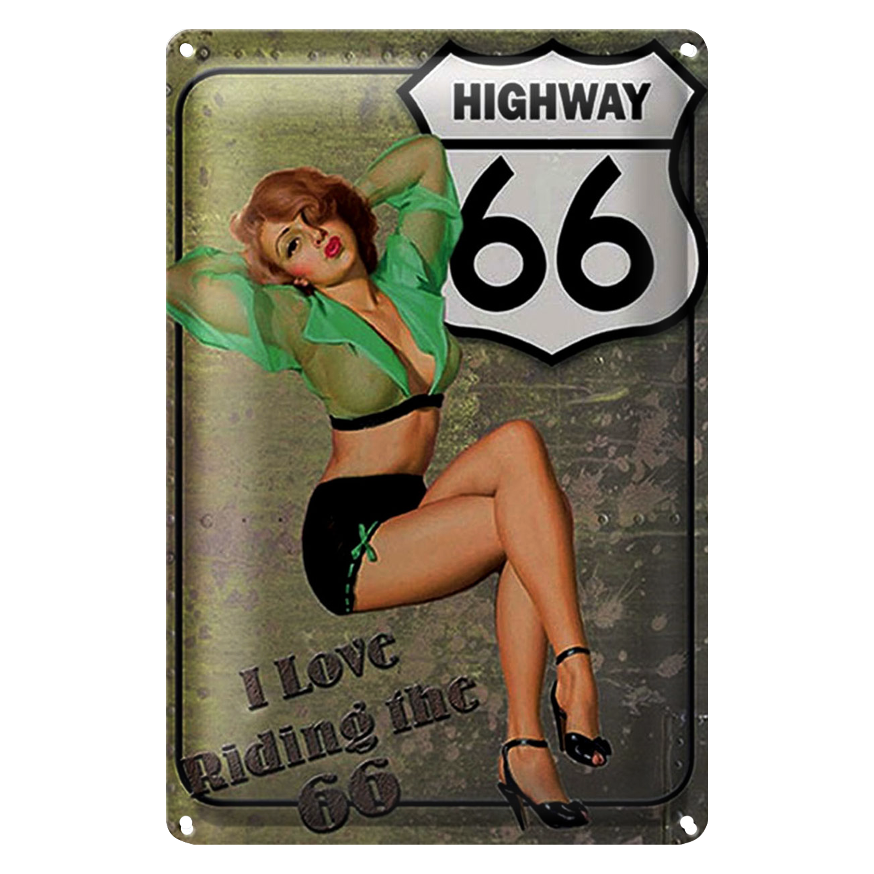 Blechschild Pin Up 20x30cm Highway 66 i love riding the 66