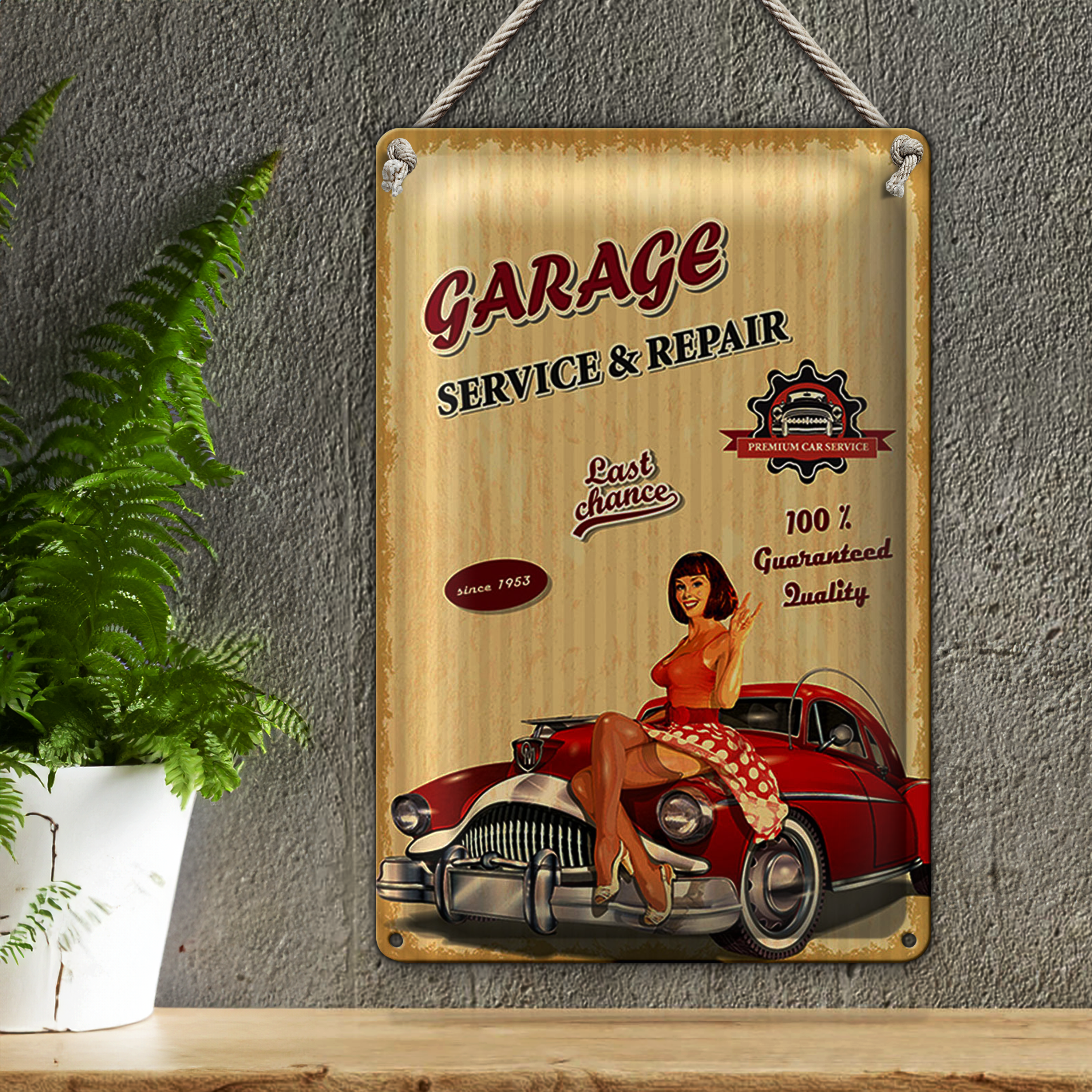 Blechschild Pinup Retro 20x30cm Garage Service Repair Auto