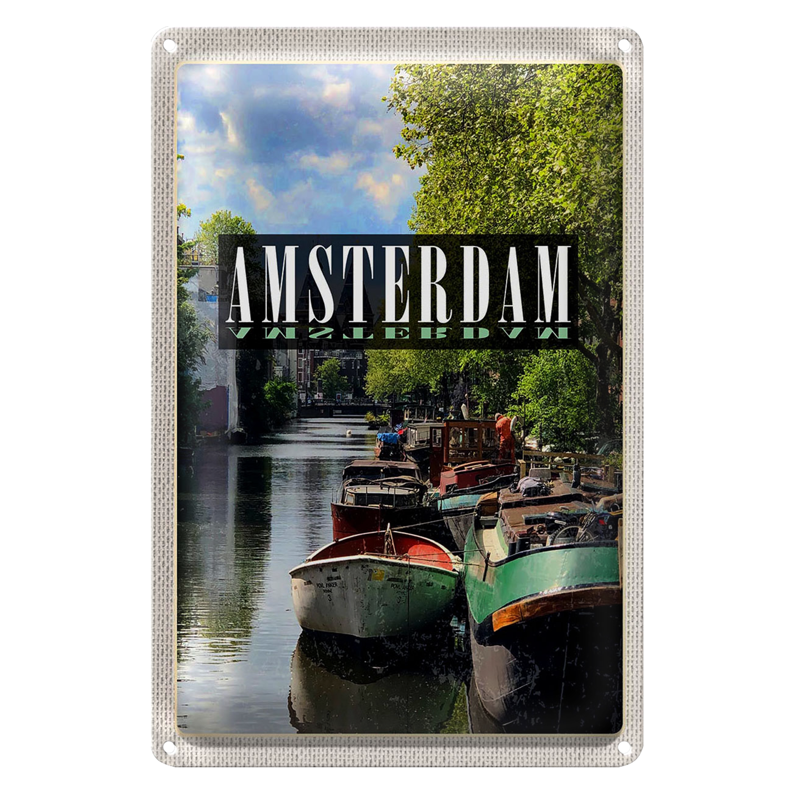 Blechschild Reise 20x30cm Amsterdam Reiseziel Bootsfahrt