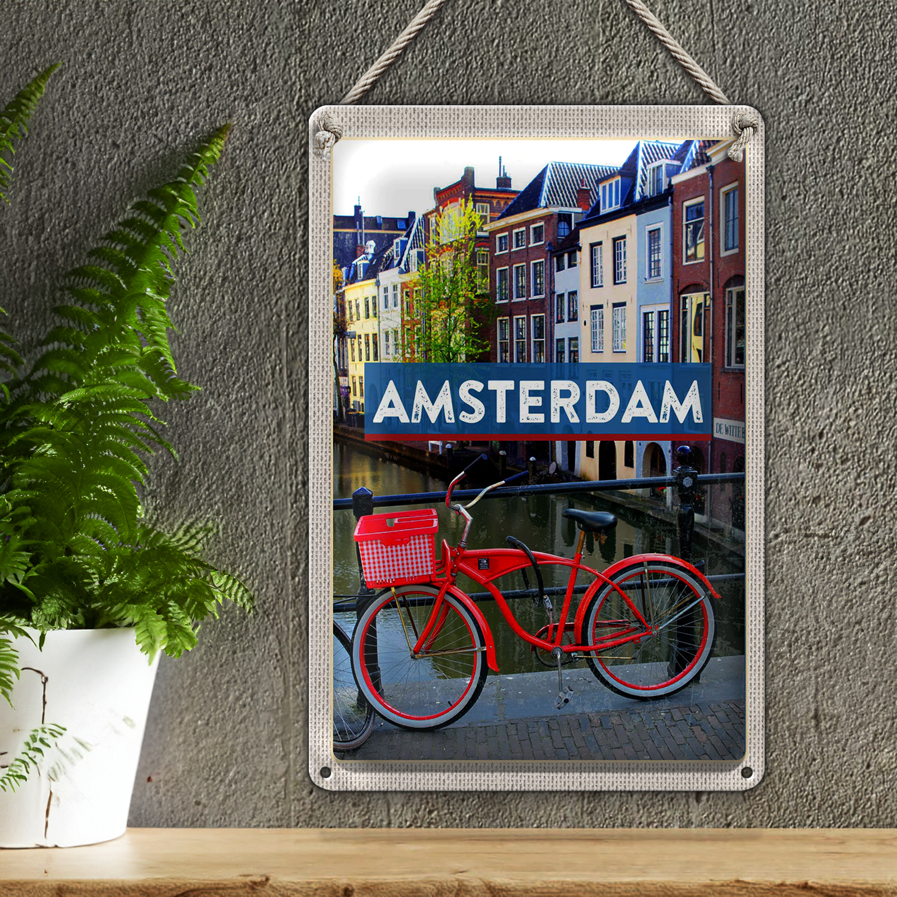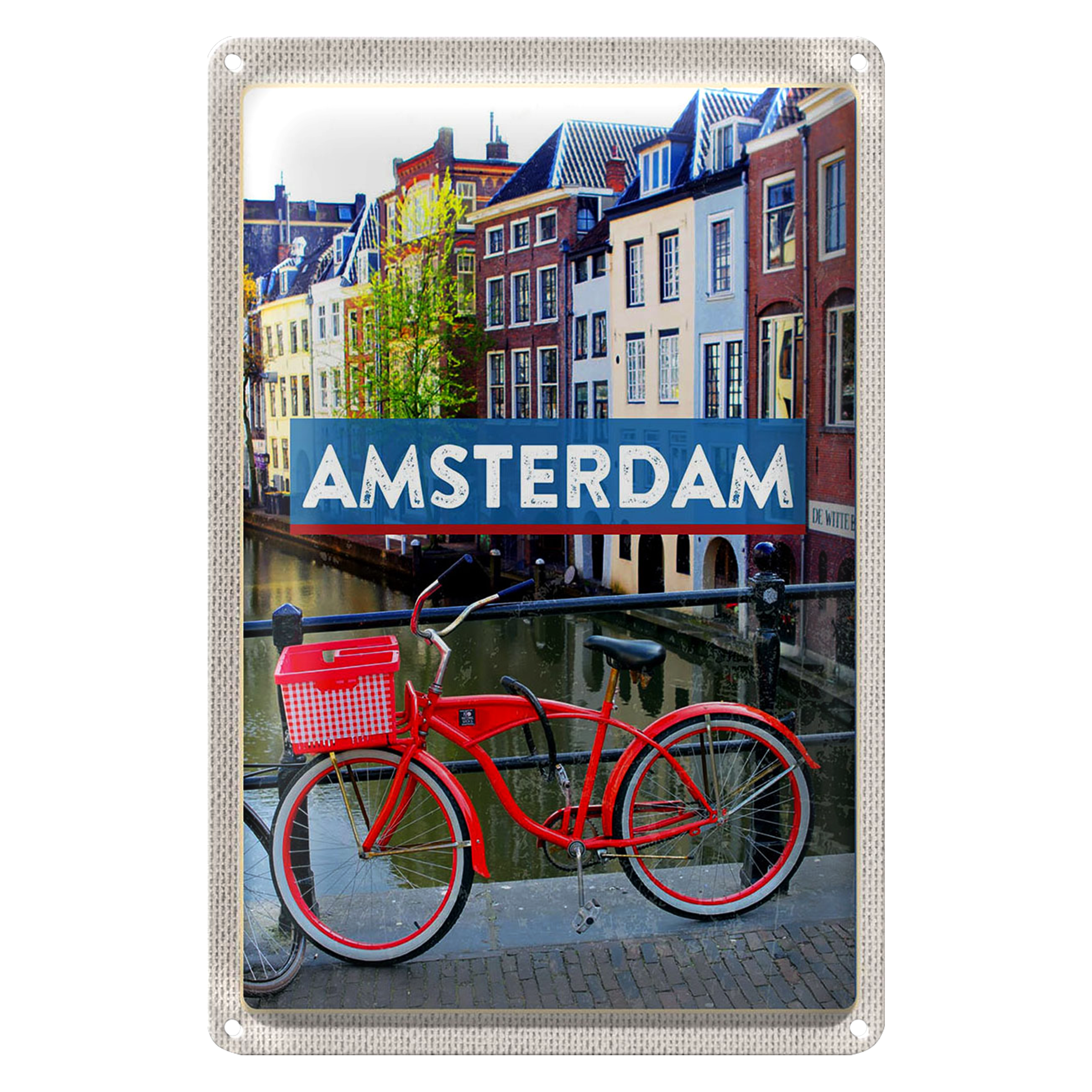 Blechschild Reise 20x30cm Amsterdam Reiseziel Fahrrad