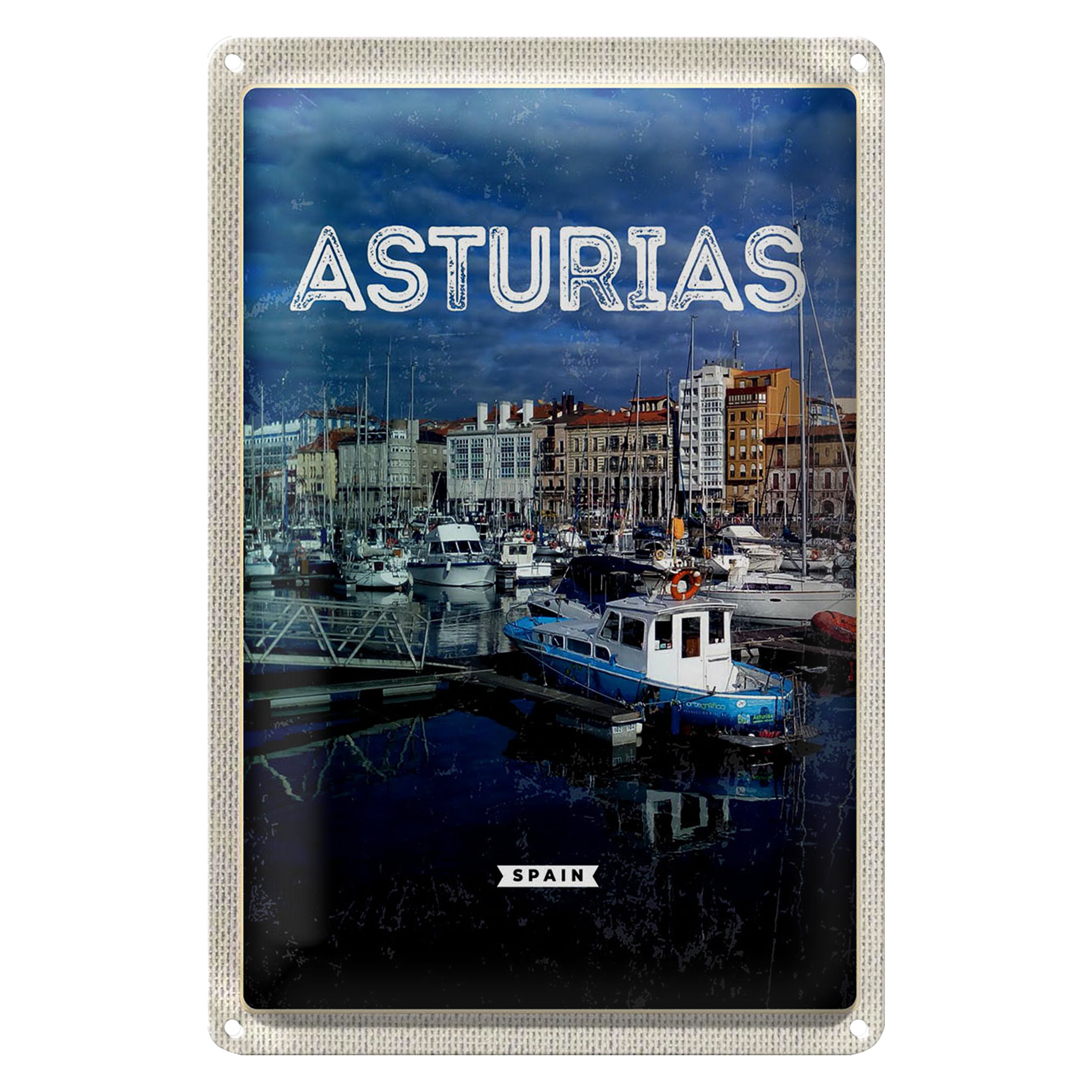 Blechschild Reise 20x30cm Asturias Spanien Yachthafen
