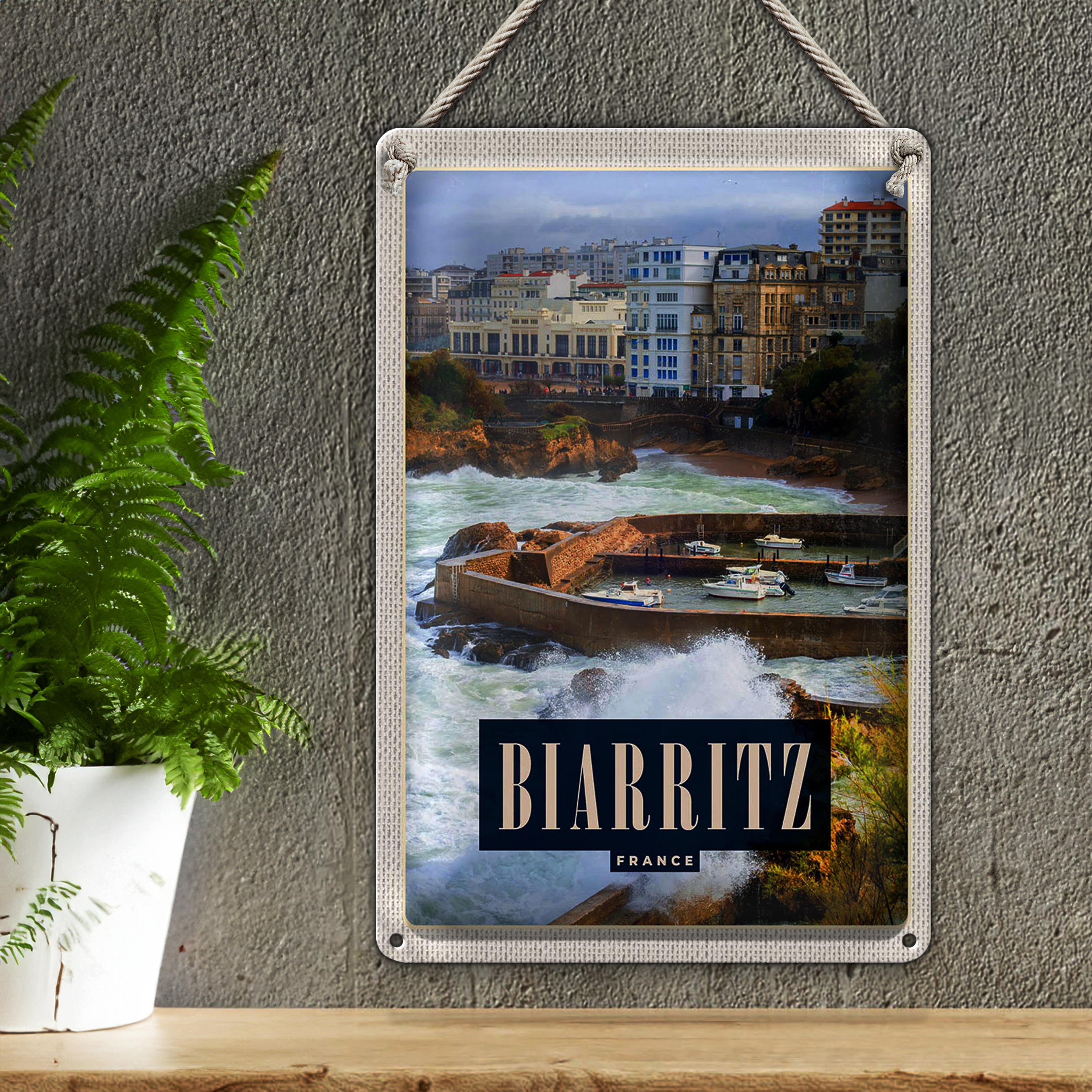 Blechschild Reise 20x30cm Biarritz France Seebad Urlaubsort Meer