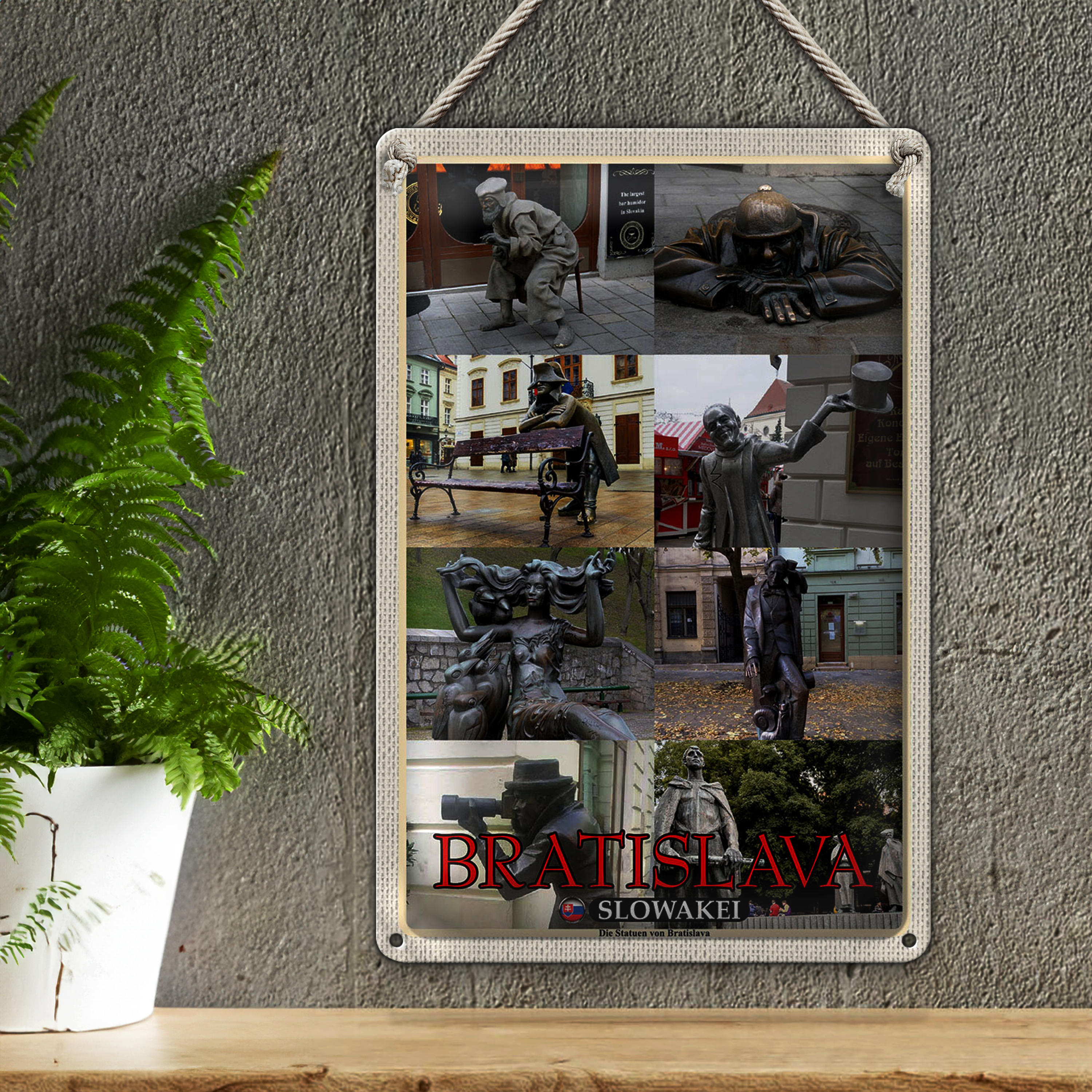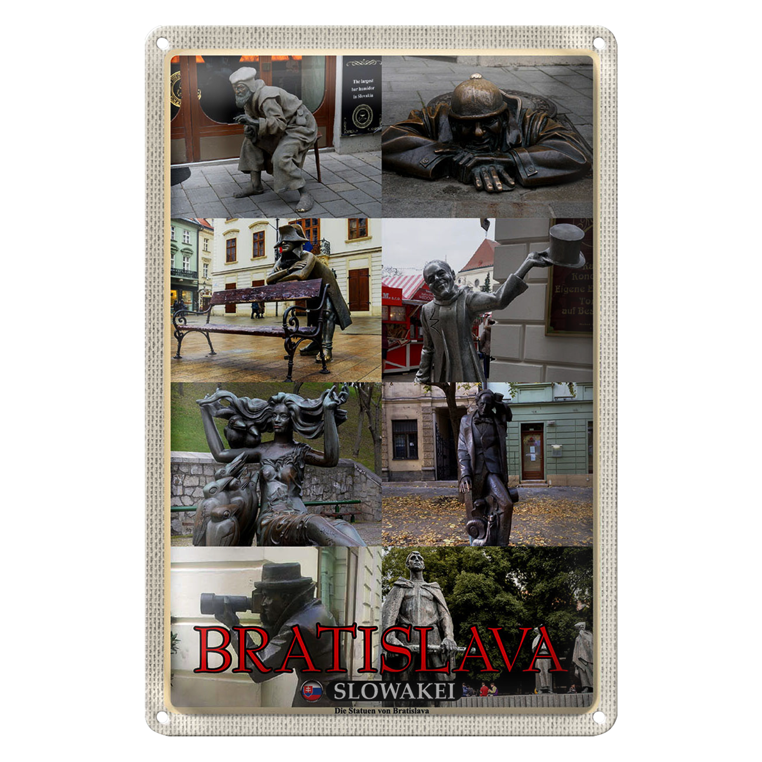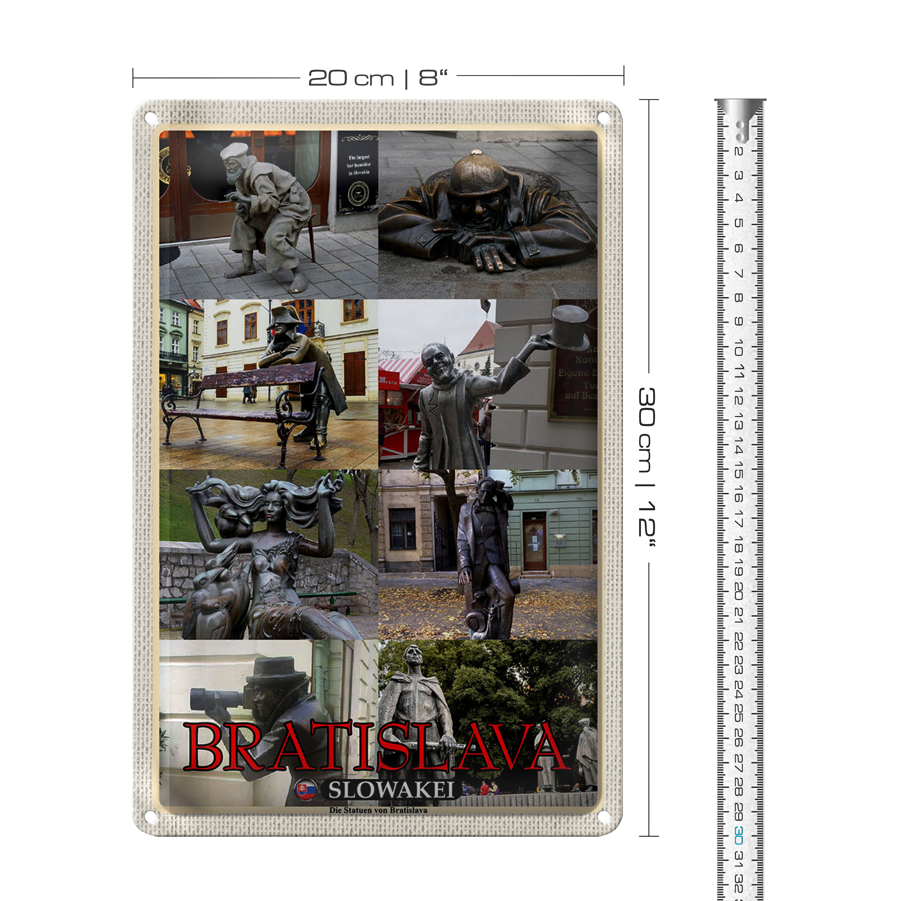 Blechschild Reise 20x30cm Bratislava Slowakei Statuen von Bratislava