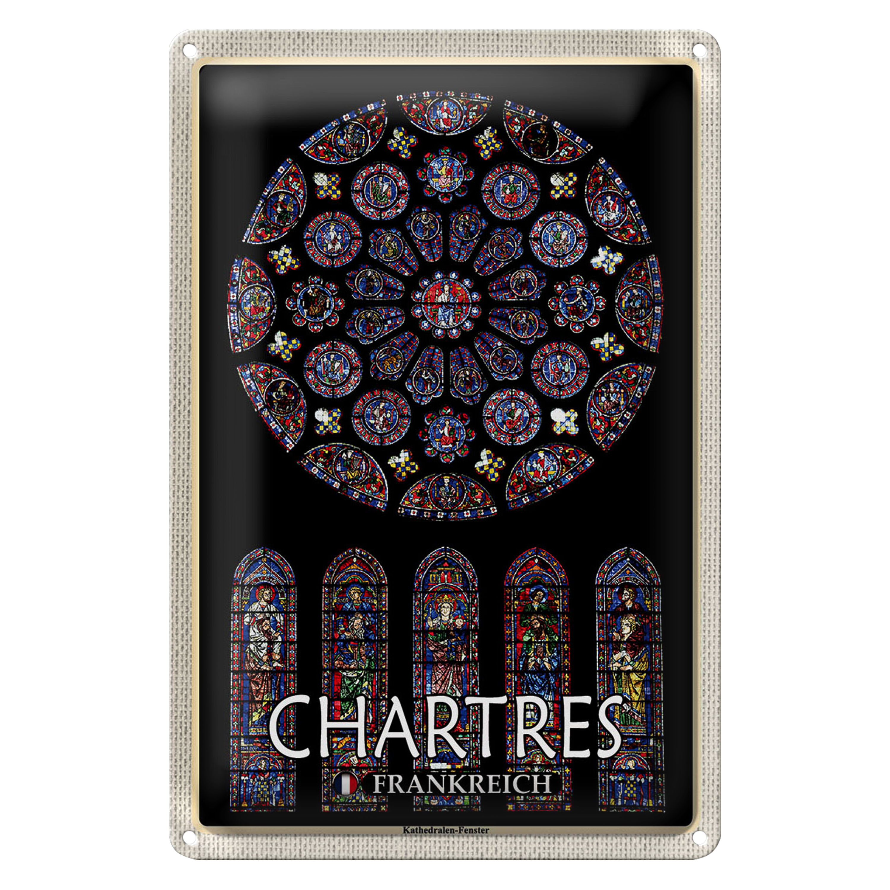 Blechschild Reise 20x30cm Chartres Frankreich Kathedralenfenster