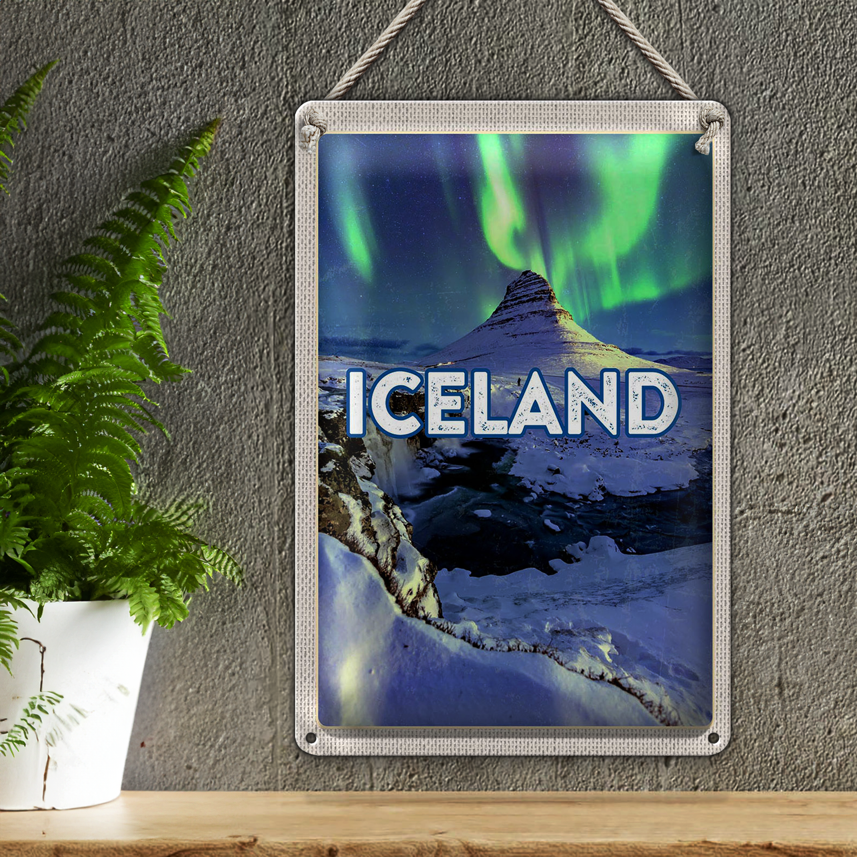Blechschild Reise 20x30cm Iceland Inselstaat Polarlicht Island