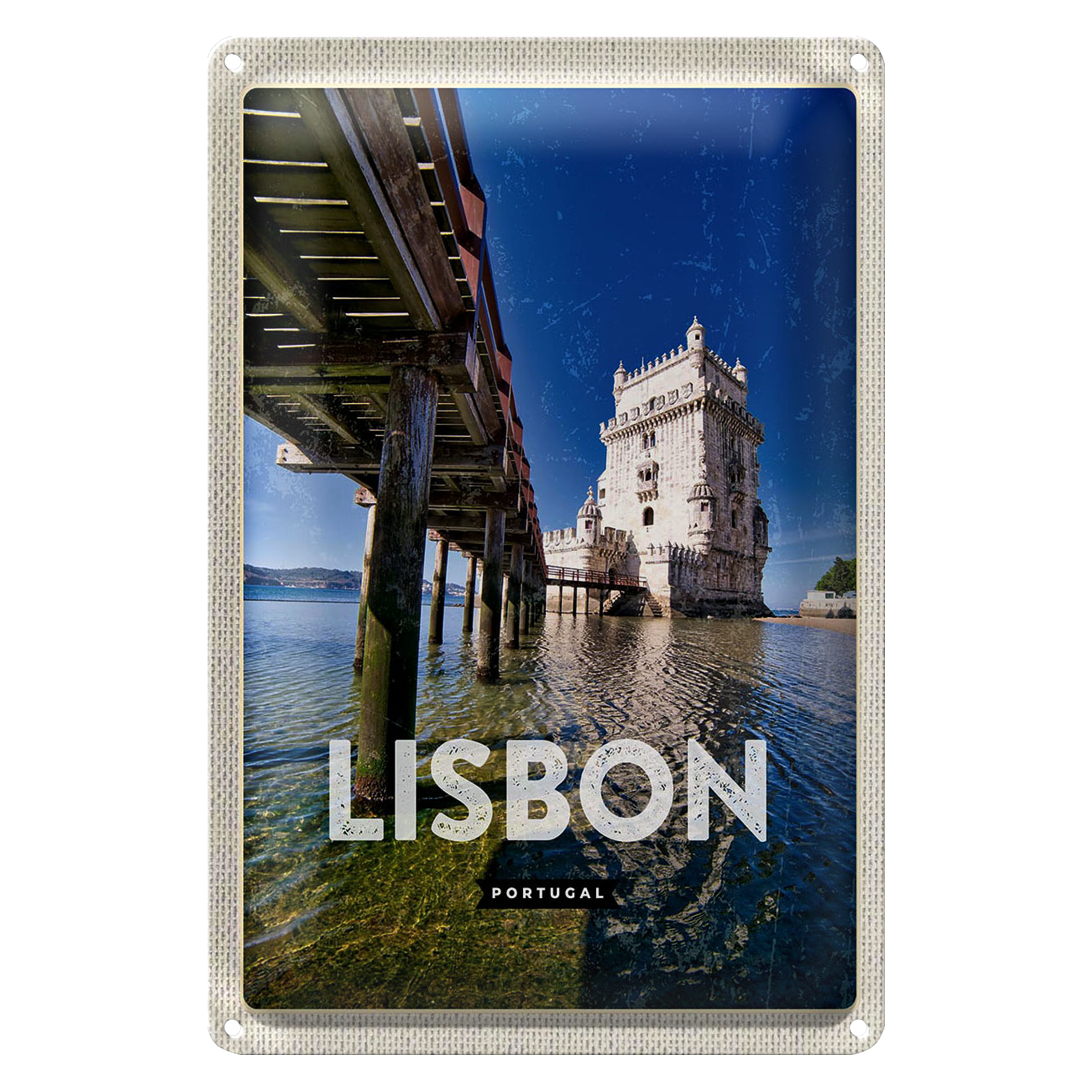 Blechschild Reise 20x30cm Lisbon Portugal Meer Reisezirl Urlaub