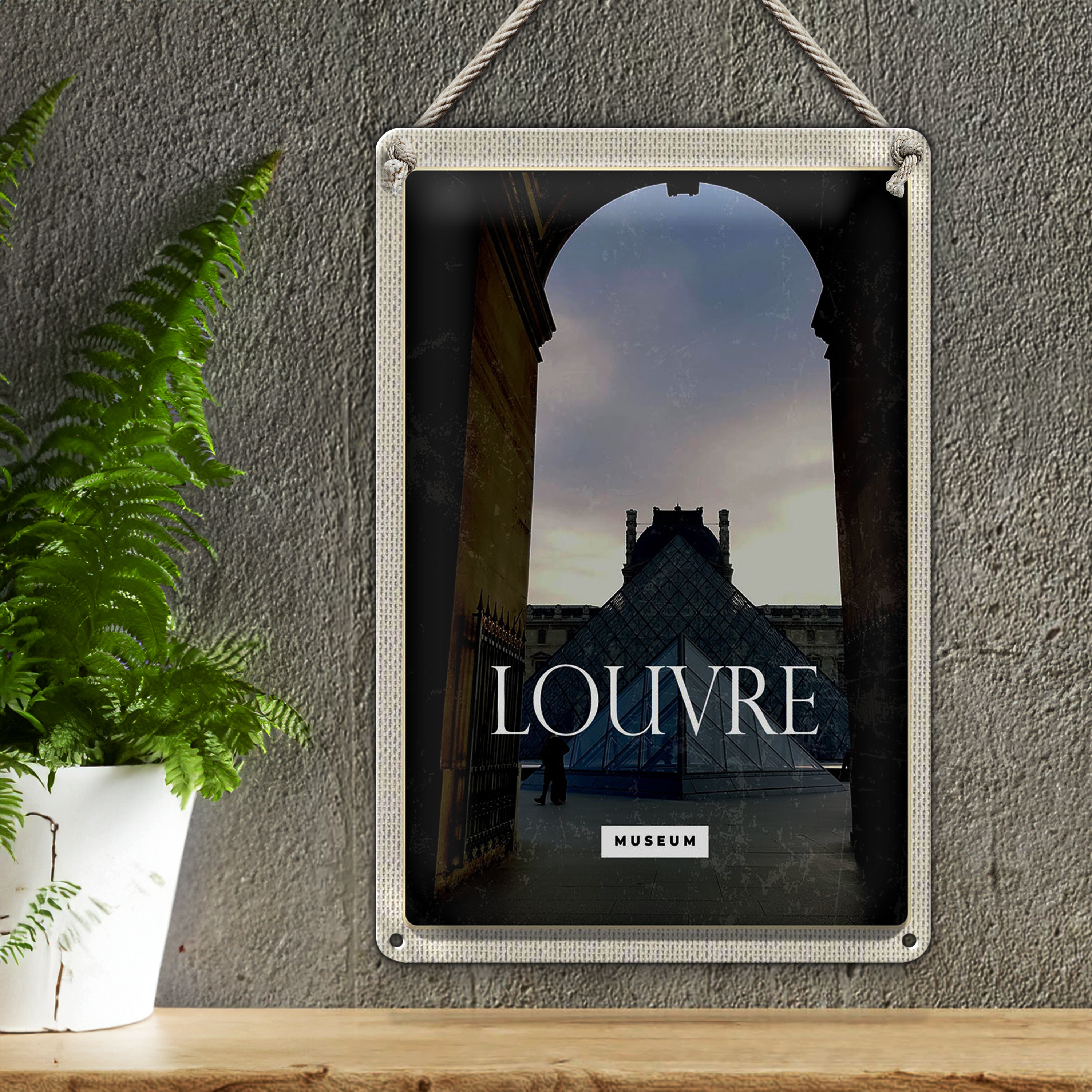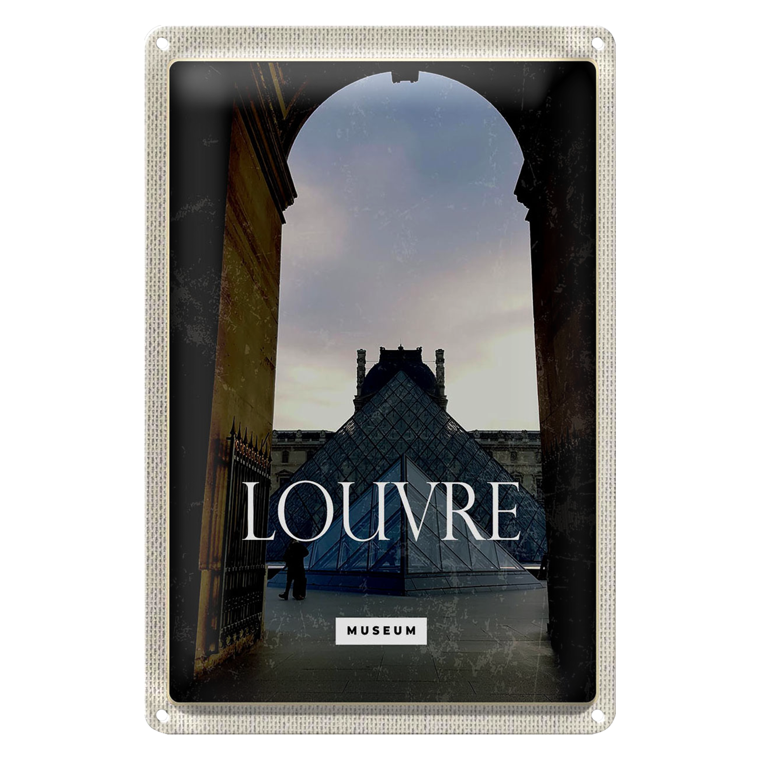 Blechschild Reise 20x30cm Louvre Museum Reiseziel Architektur