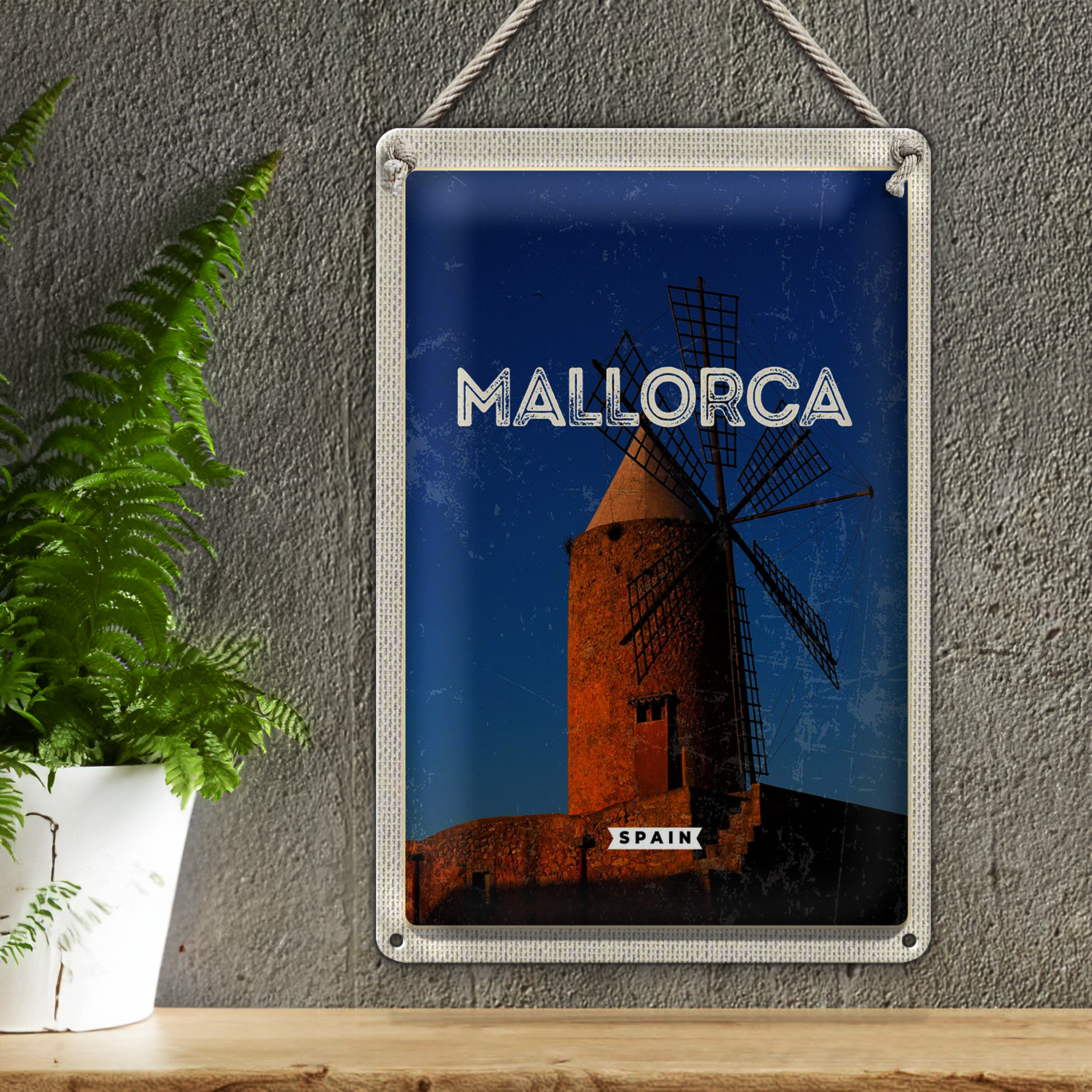 Blechschild Reise 20x30cm Mallorca Spain Retro Windmühle