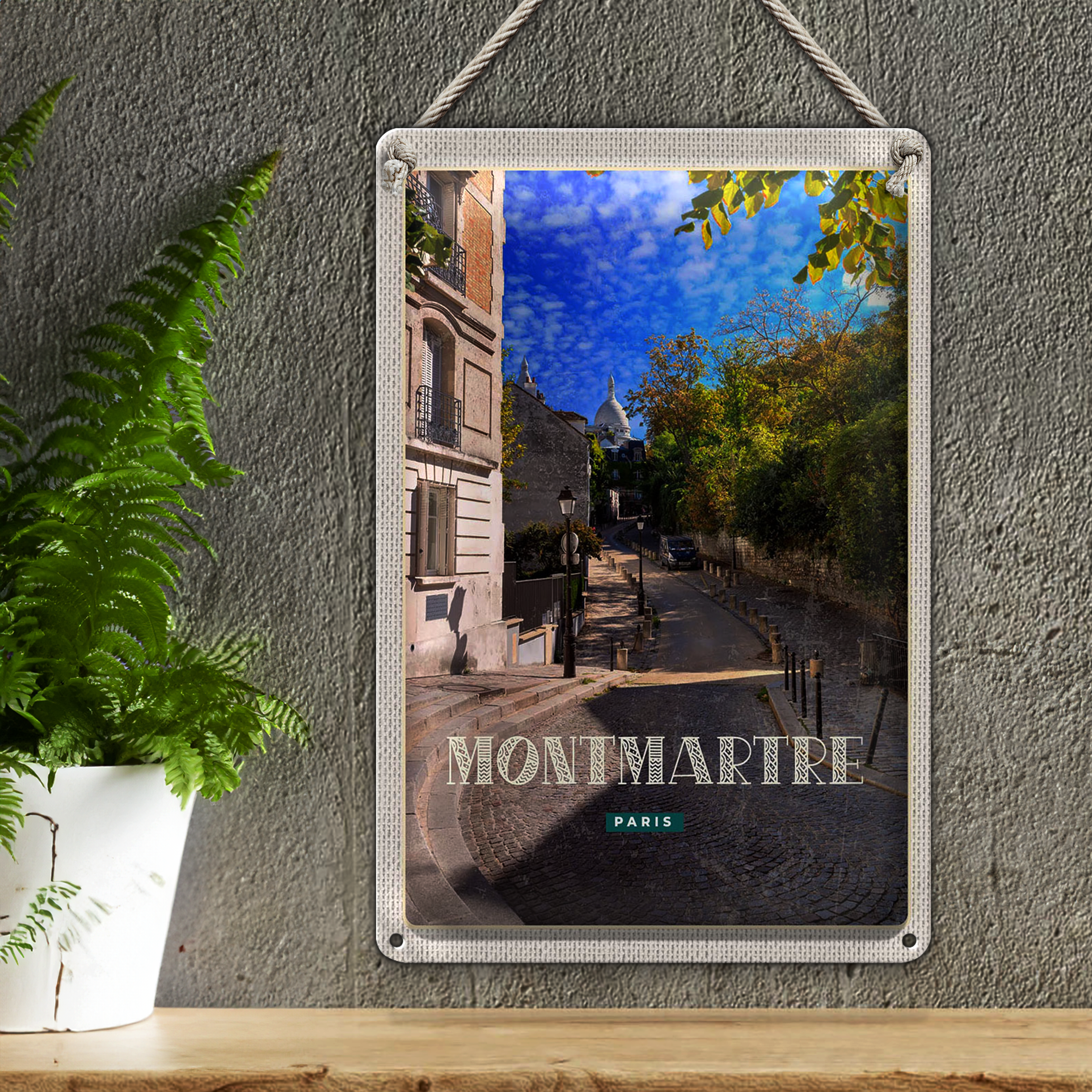 Blechschild Reise 20x30cm Montmartre Paris Straße Schild