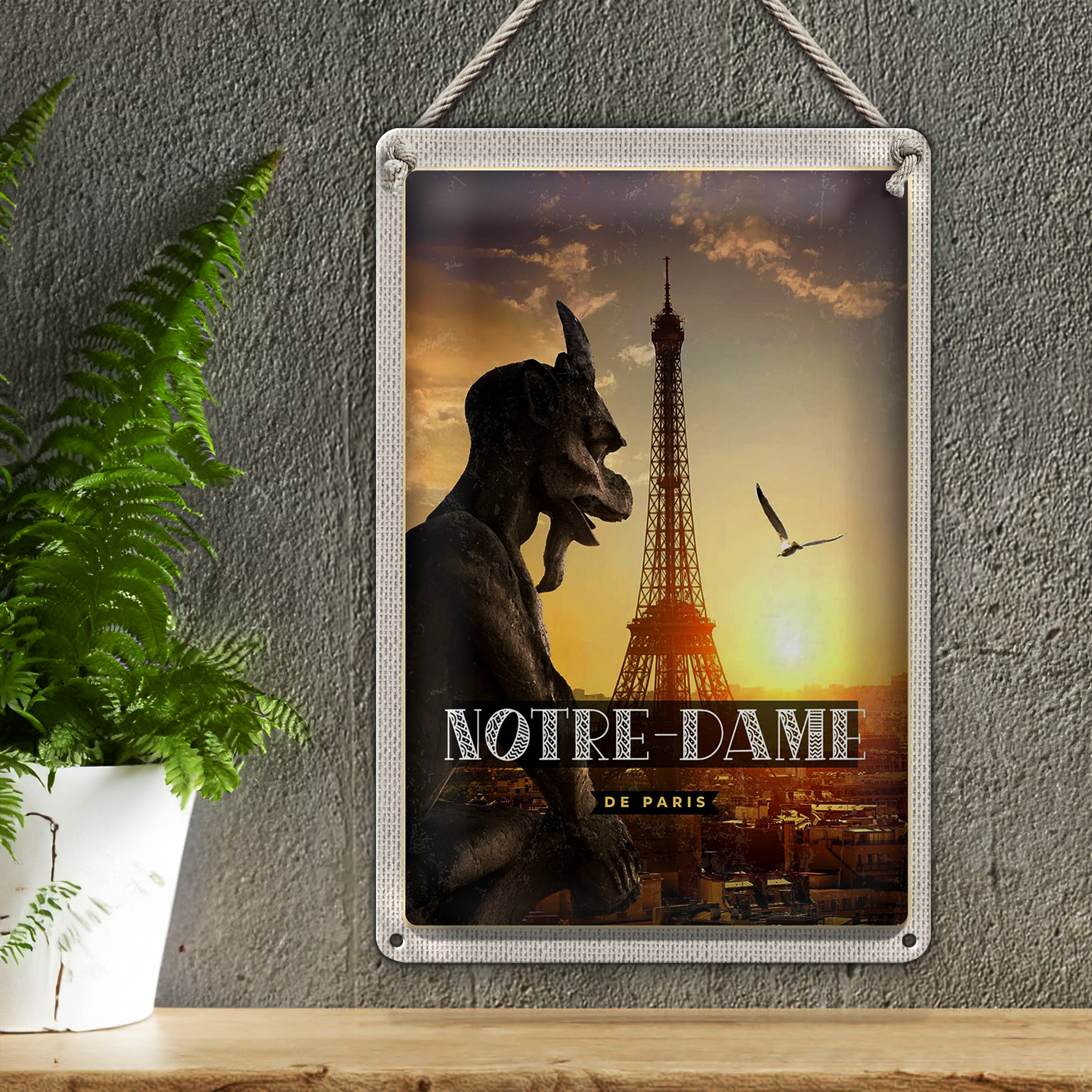 Blechschild Reise 20x30cm Notre-Dame de Paris Chimère Turm