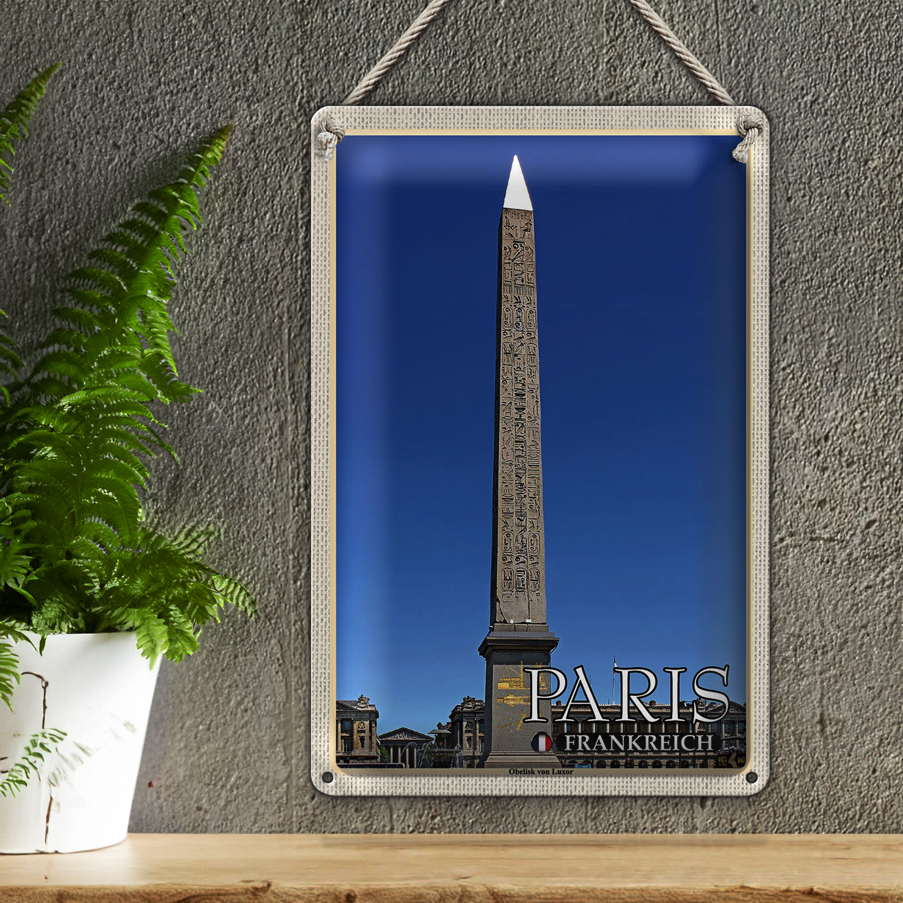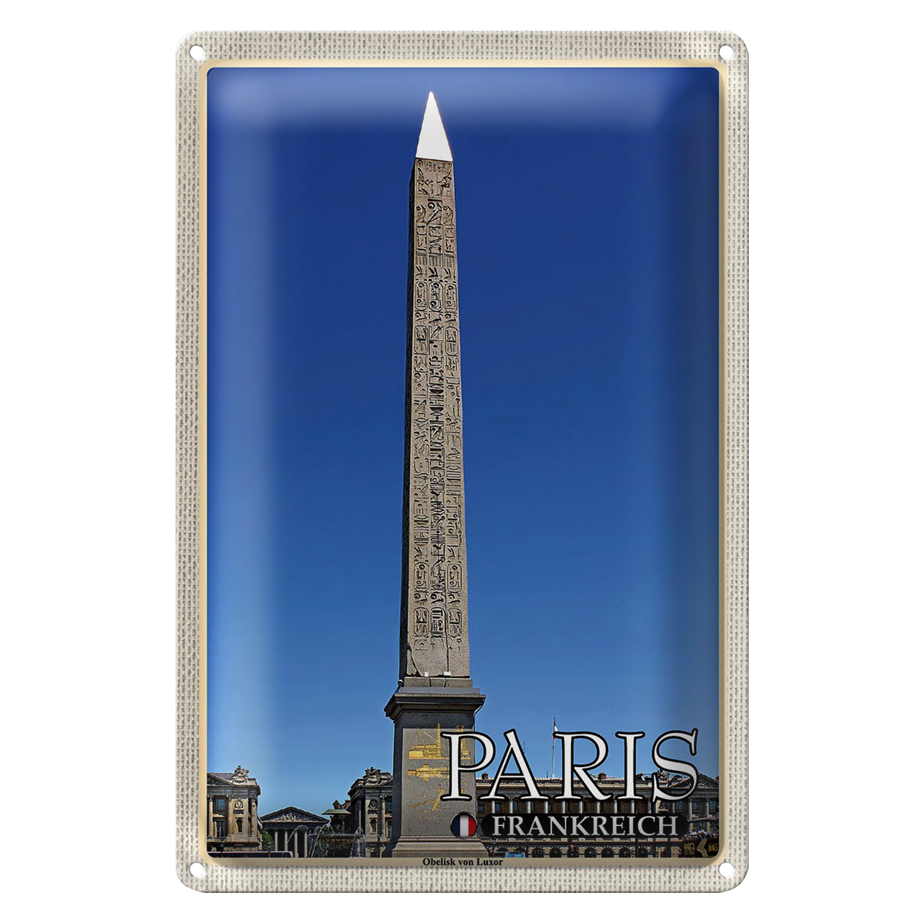 Blechschild Reise 20x30cm Paris Frankreich Obelisk von Luxor
