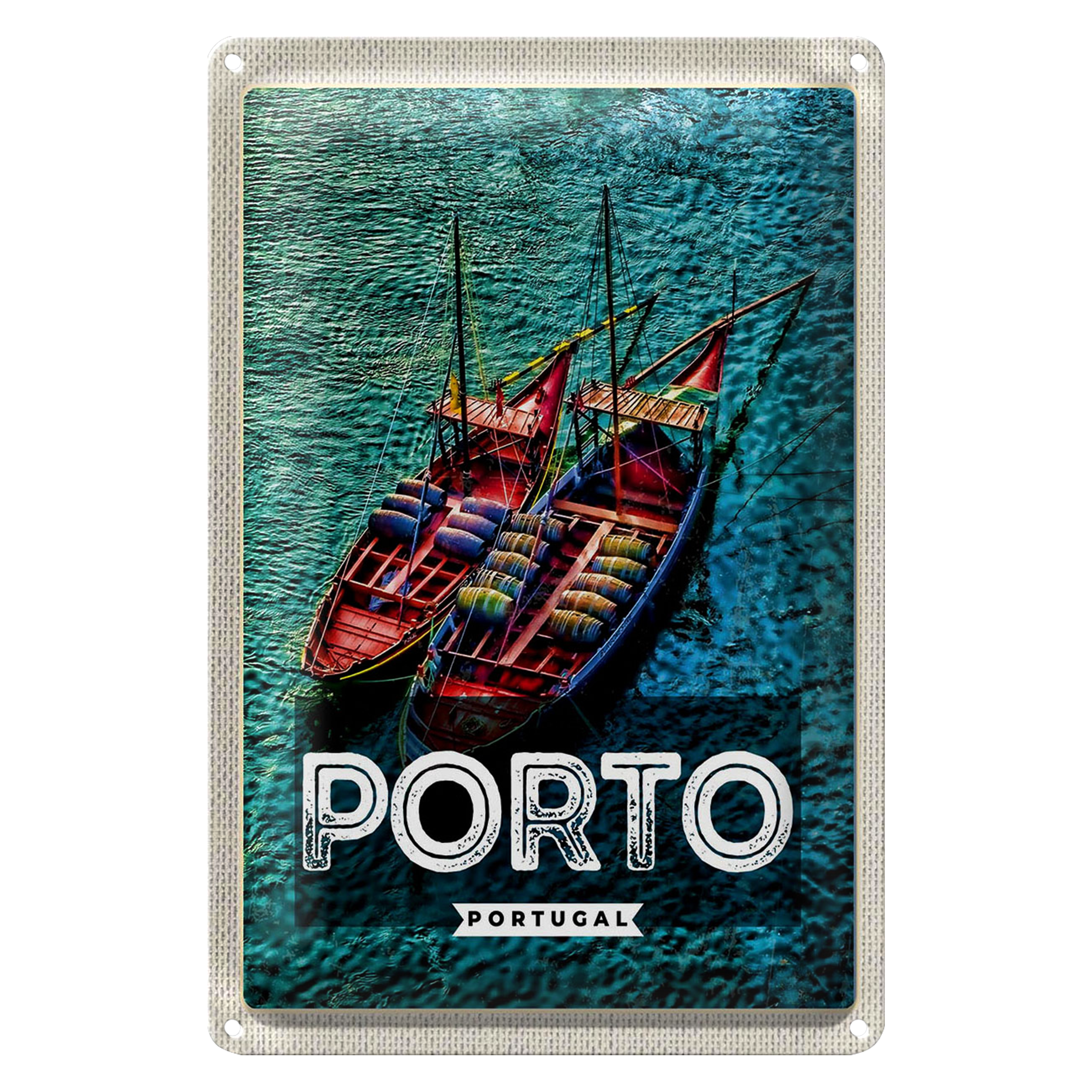 Blechschild Reise 20x30cm Porto Portugal Poster Meer Boote