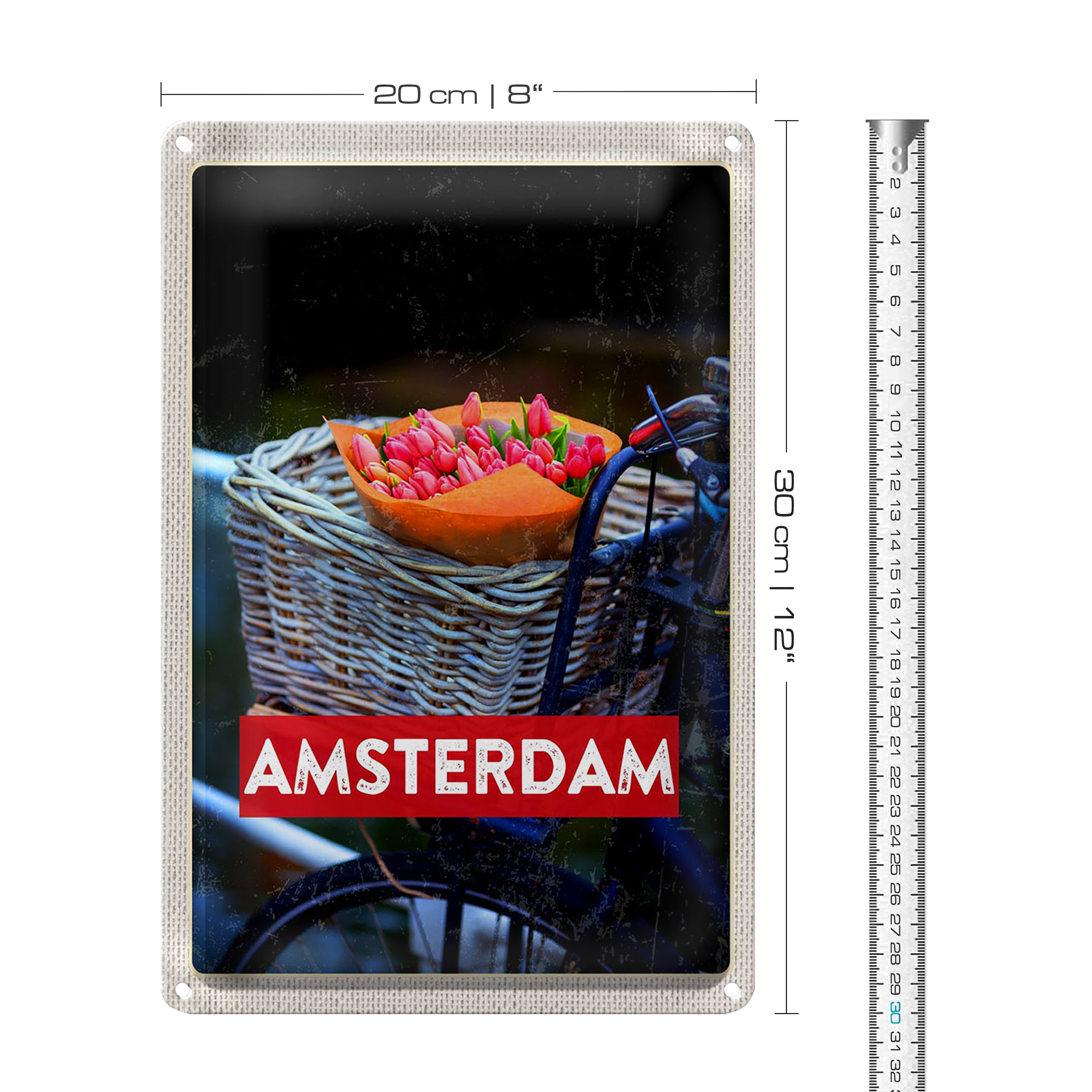 Blechschild Reise 20x30cm Retro Amsterdam Tulpen Fahrrad