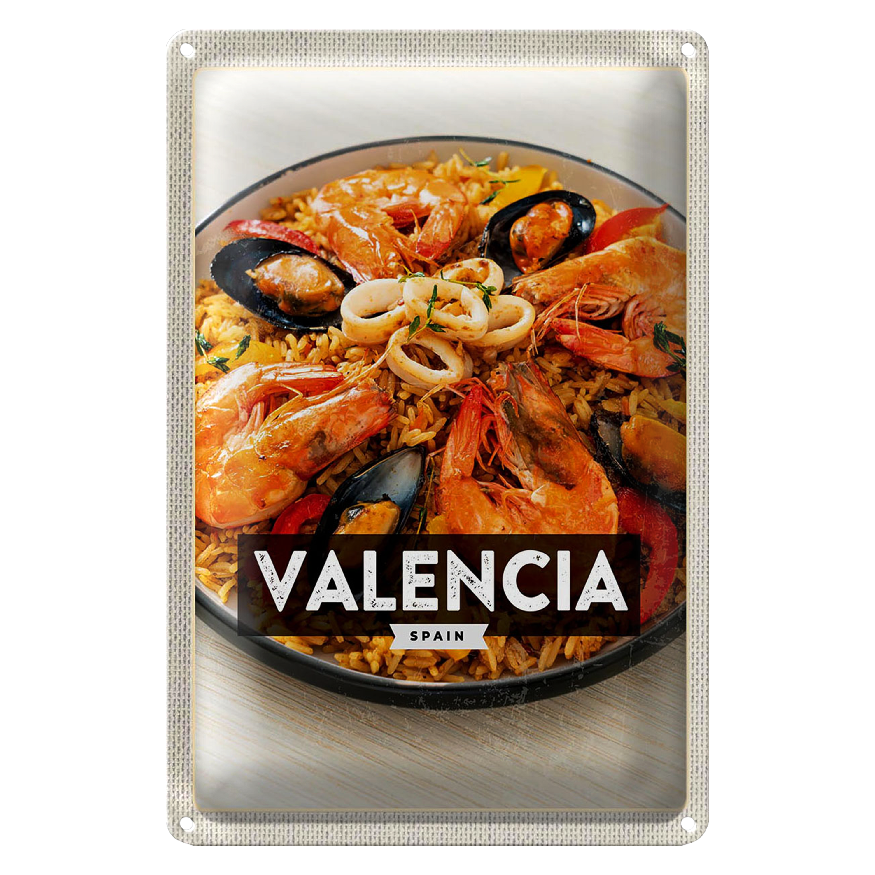 Blechschild Reise 20x30cm Valencia Spain Fisch Meeresfrüchte