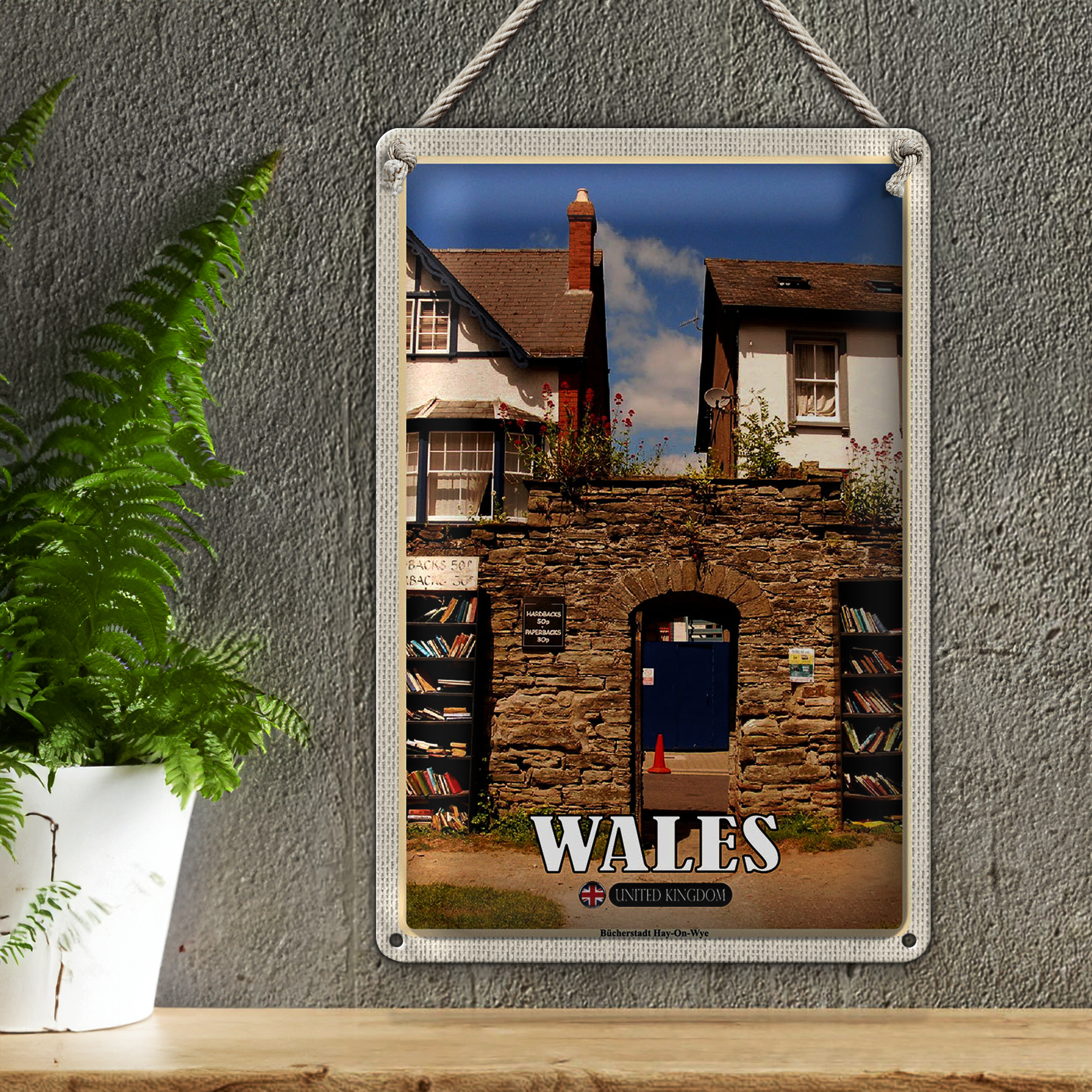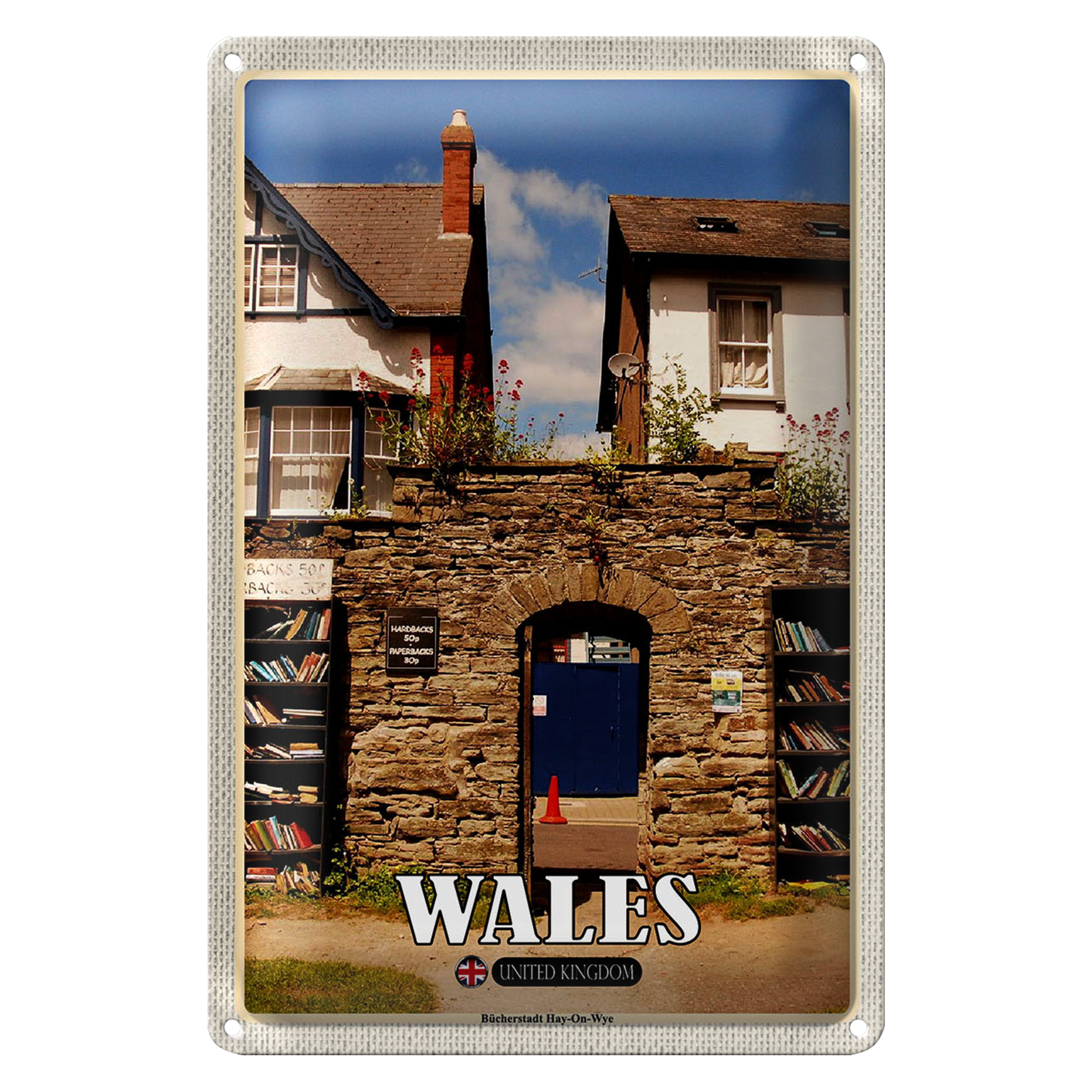 Blechschild Reise 20x30cm Wales Bücherstadt Hay-On-Wye