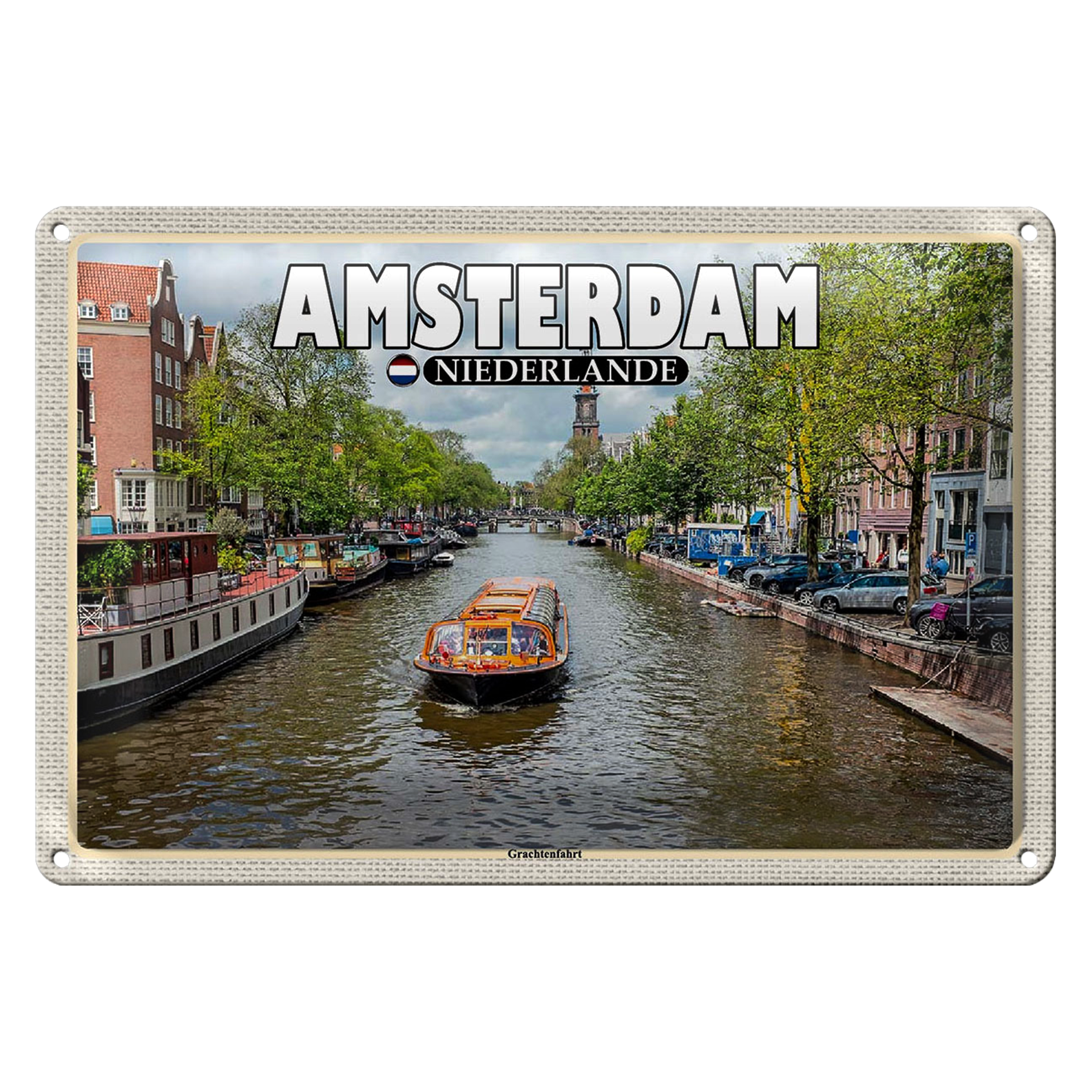 Blechschild Reise 30x20cm Amsterdam Niederlande Grachtenfahrt Fluss