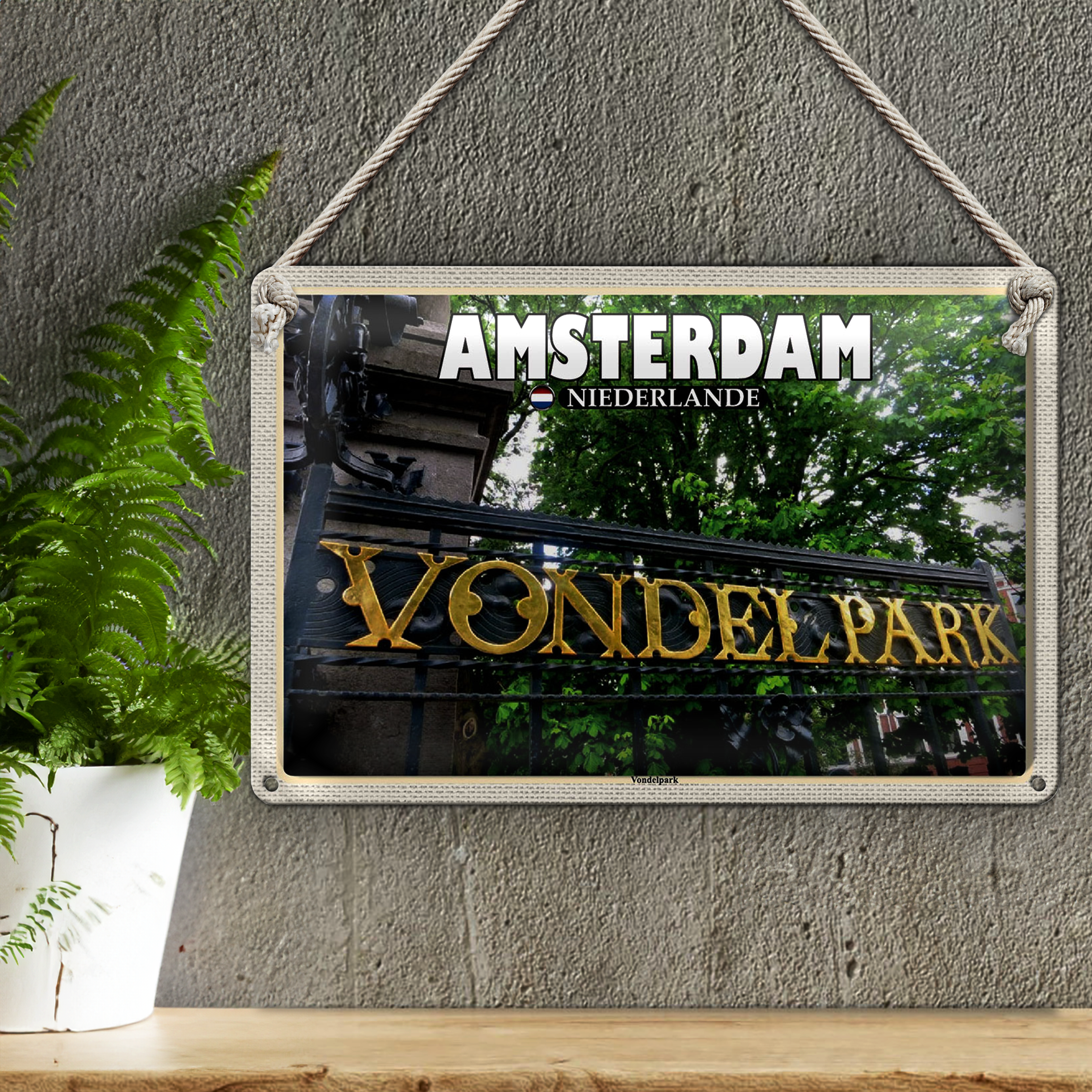 Blechschild Reise 30x20cm Amsterdam Niederlande Vondelpark