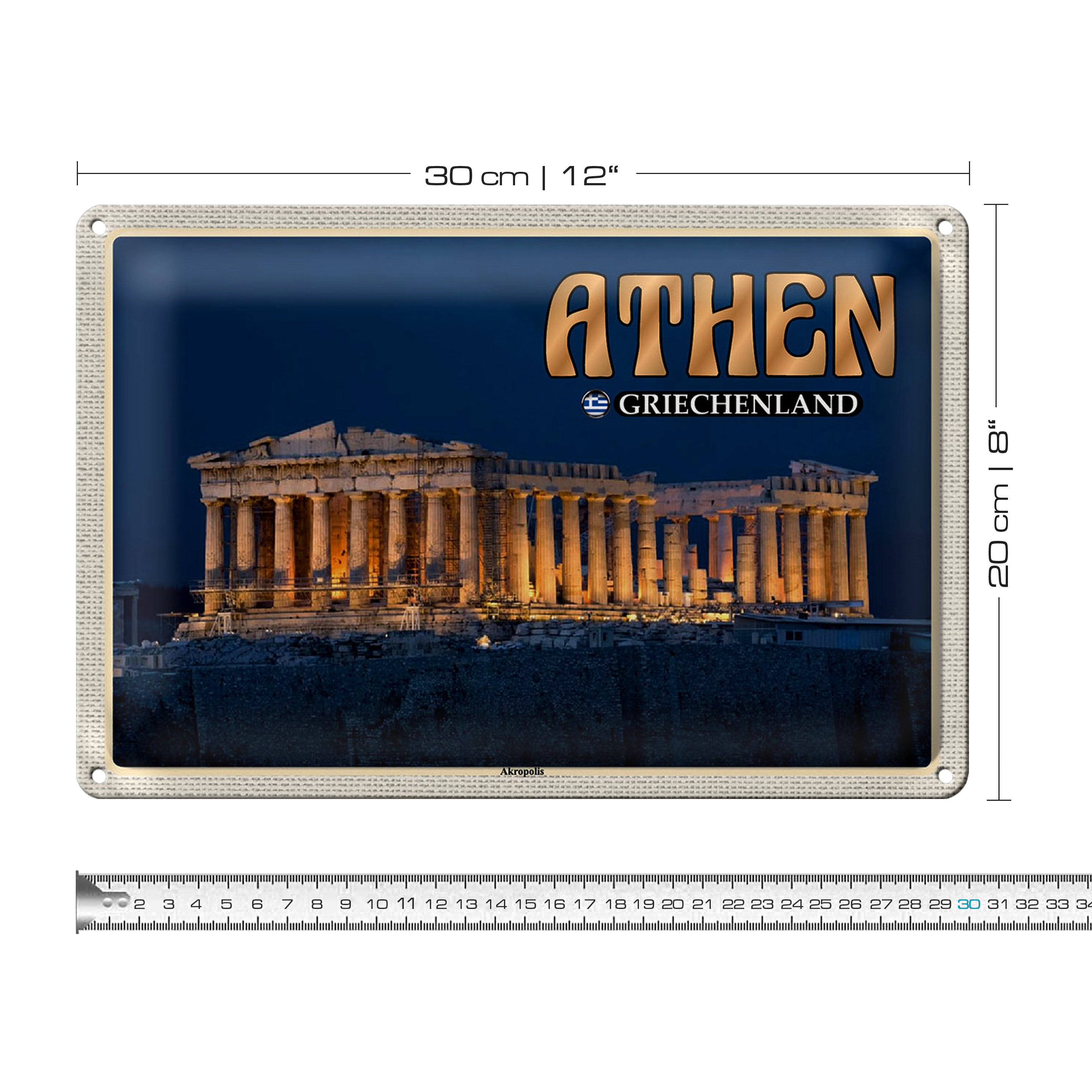 Blechschild Reise 30x20cm Athen Griechenland Akropolis Stadtfestung