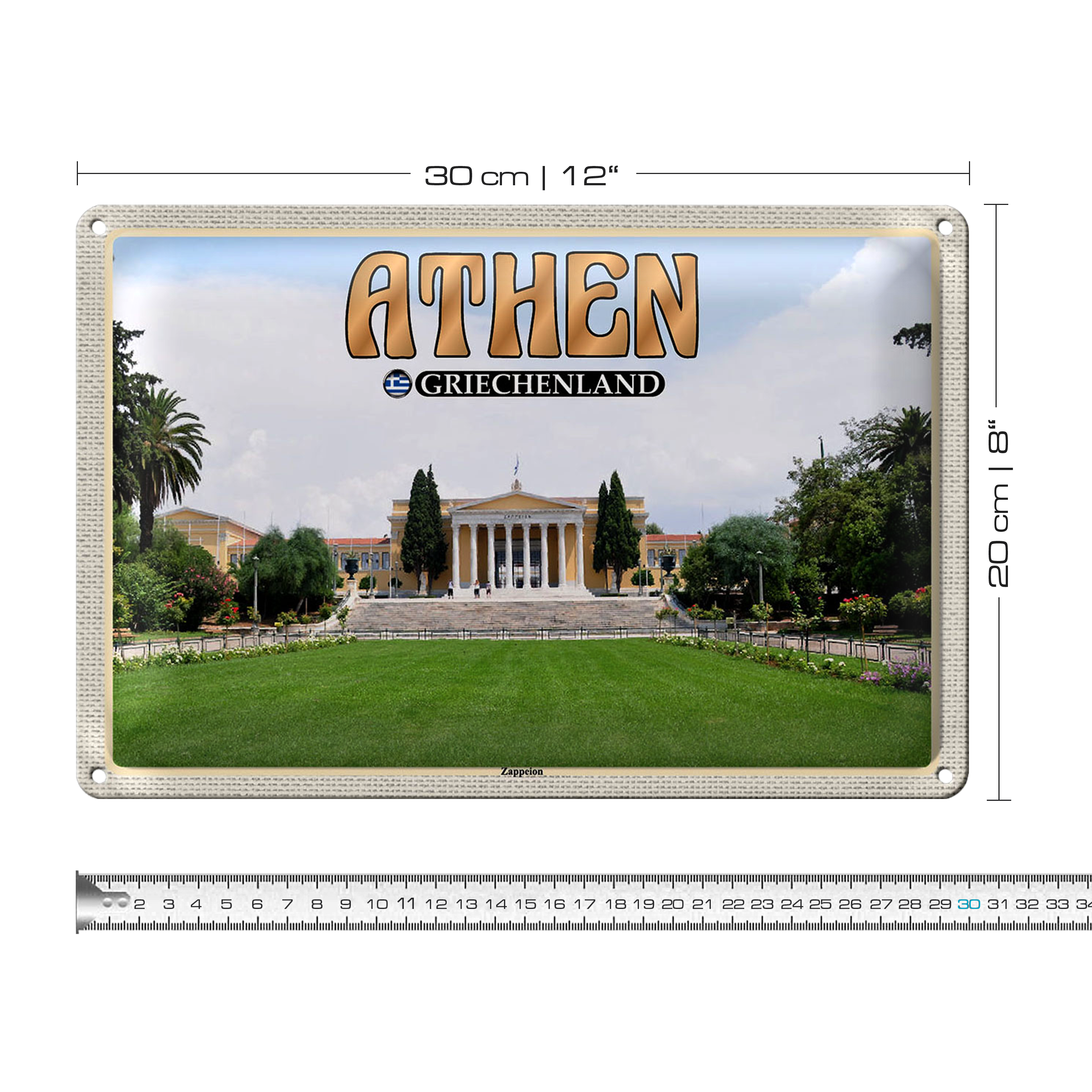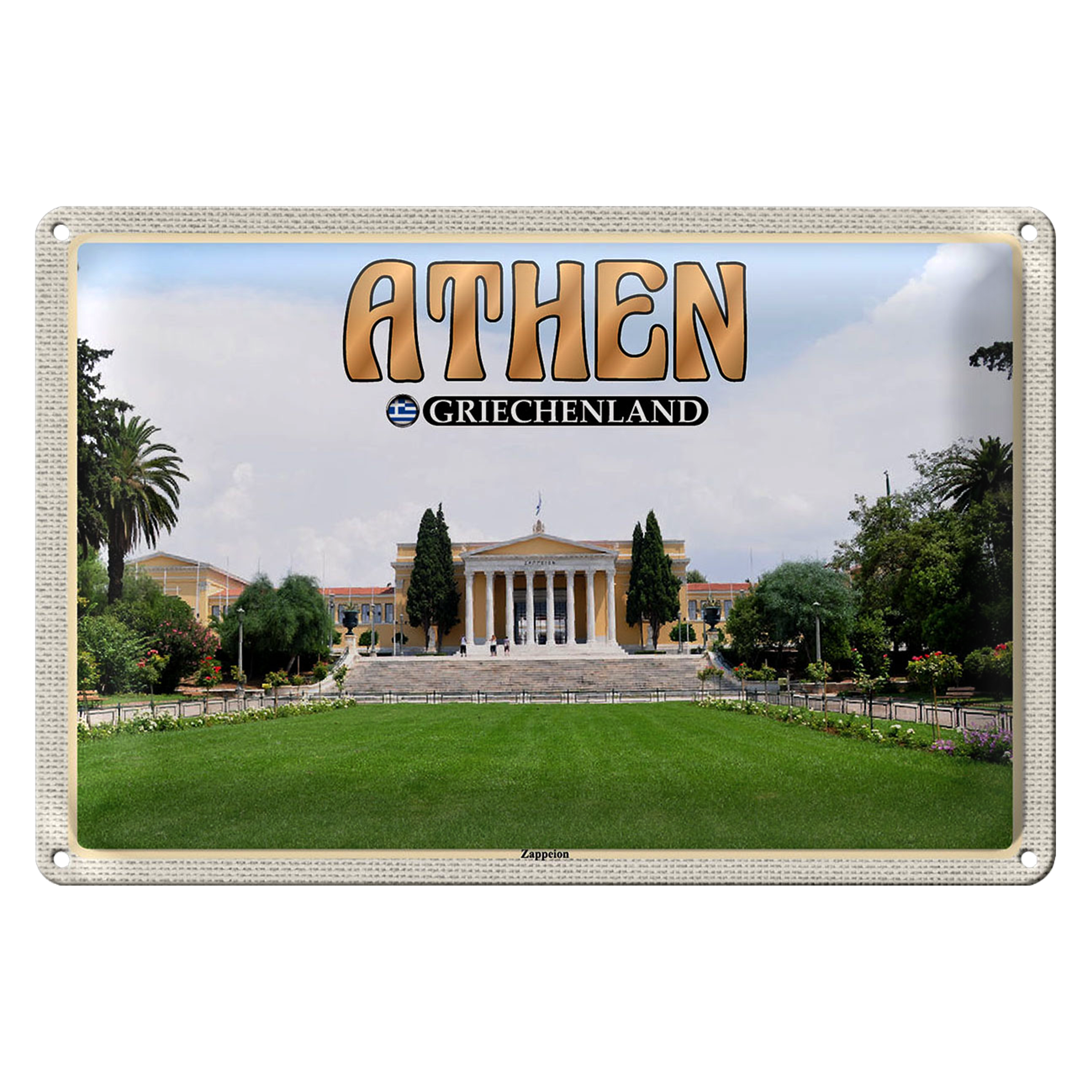 Blechschild Reise 30x20cm Athen Griechenland Zappeion Kongress
