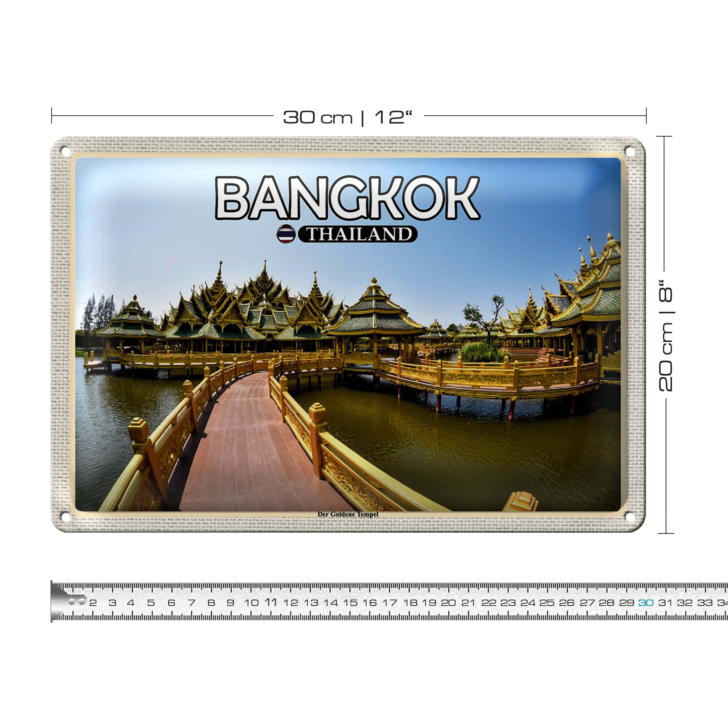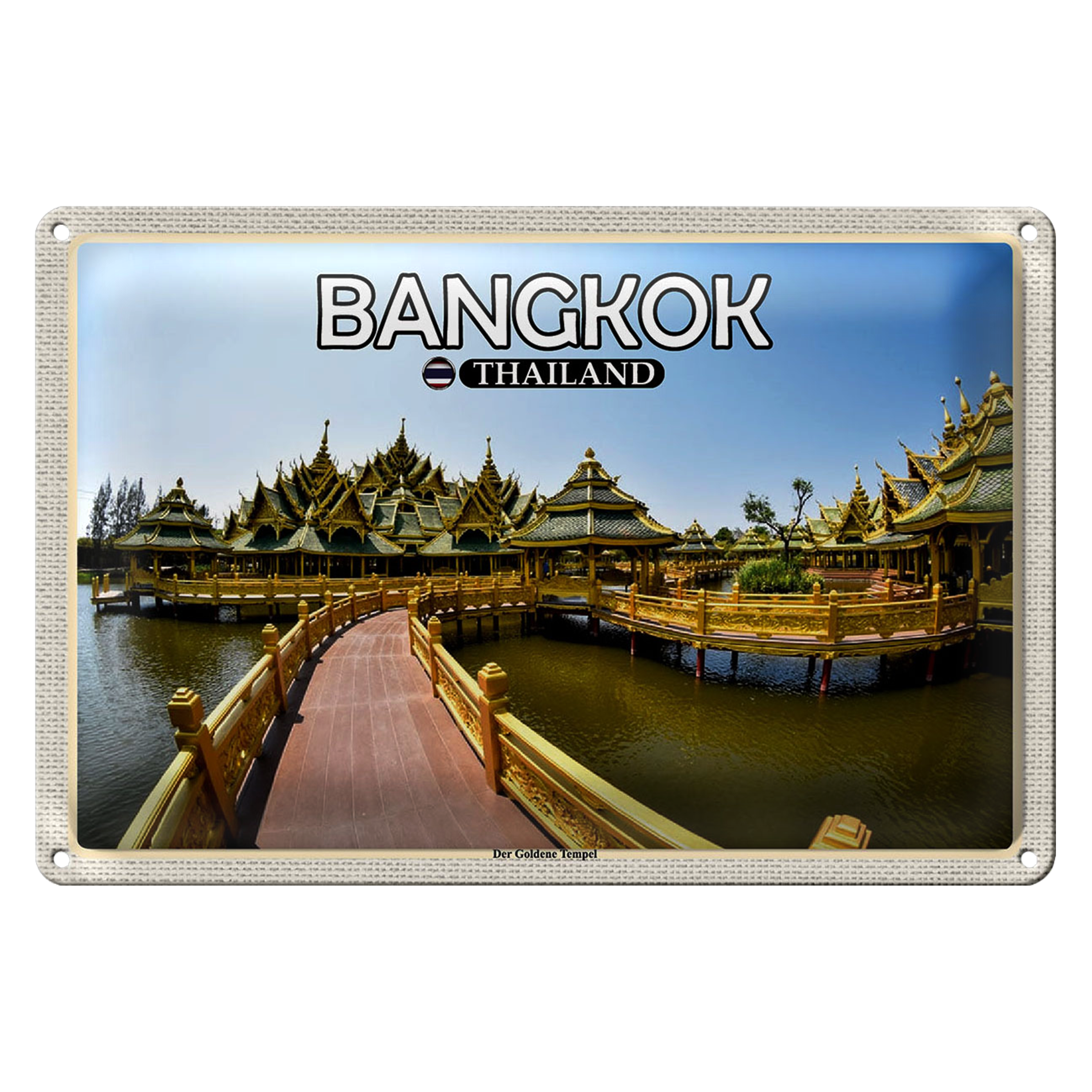 Blechschild Reise 30x20cm Bangkok Thailand Der Goldene Tempel
