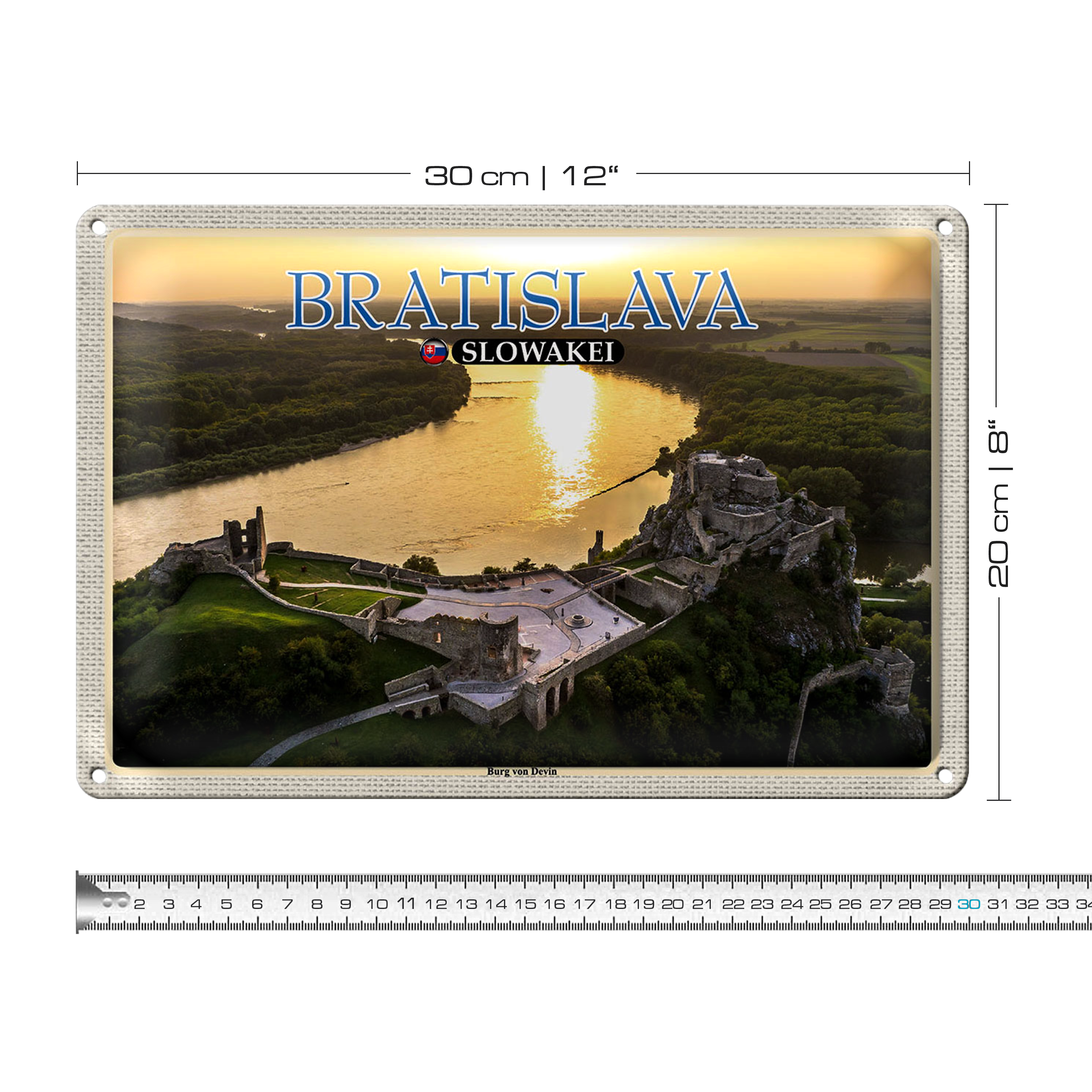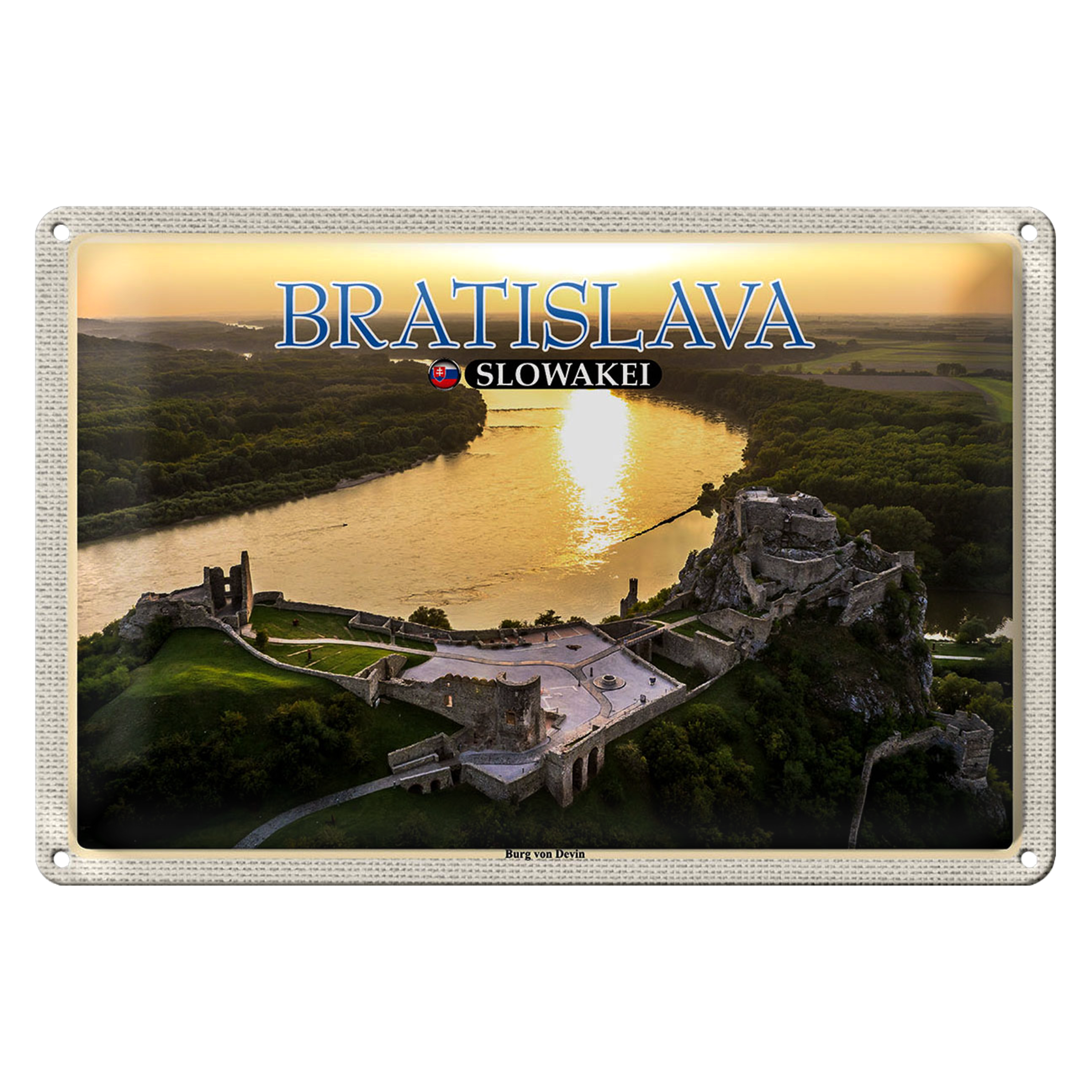 Blechschild Reise 30x20cm Bratislava Slowakei Burg von Devin