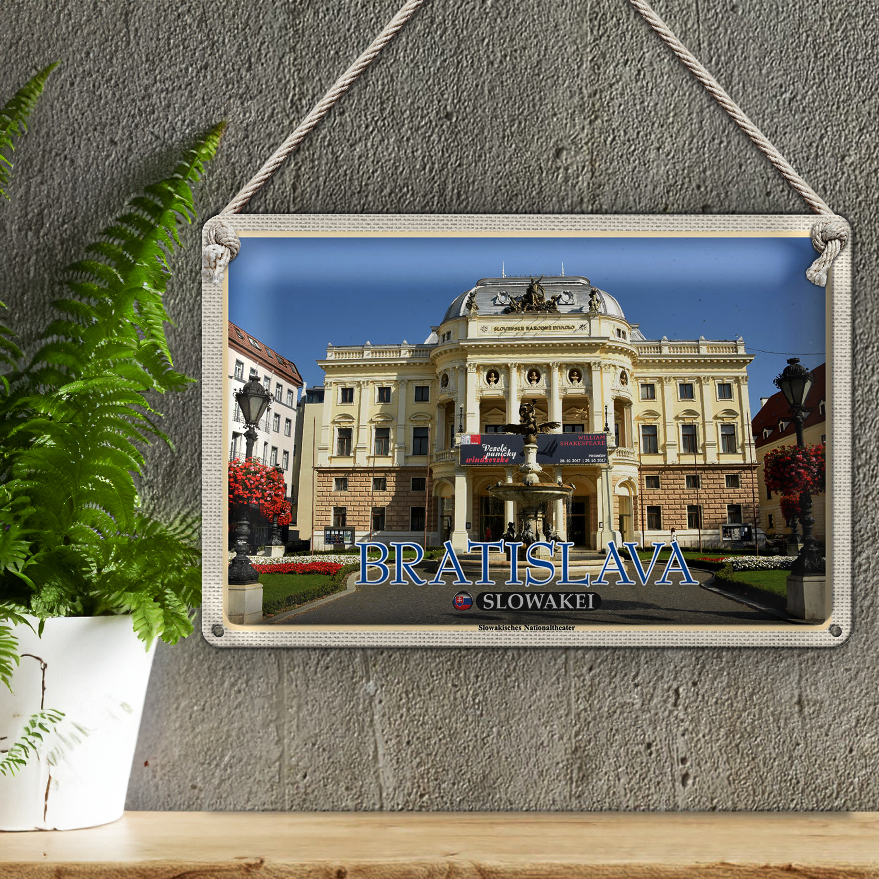 Blechschild Reise 30x20cm Bratislava Slowakei Slowakisches Theater