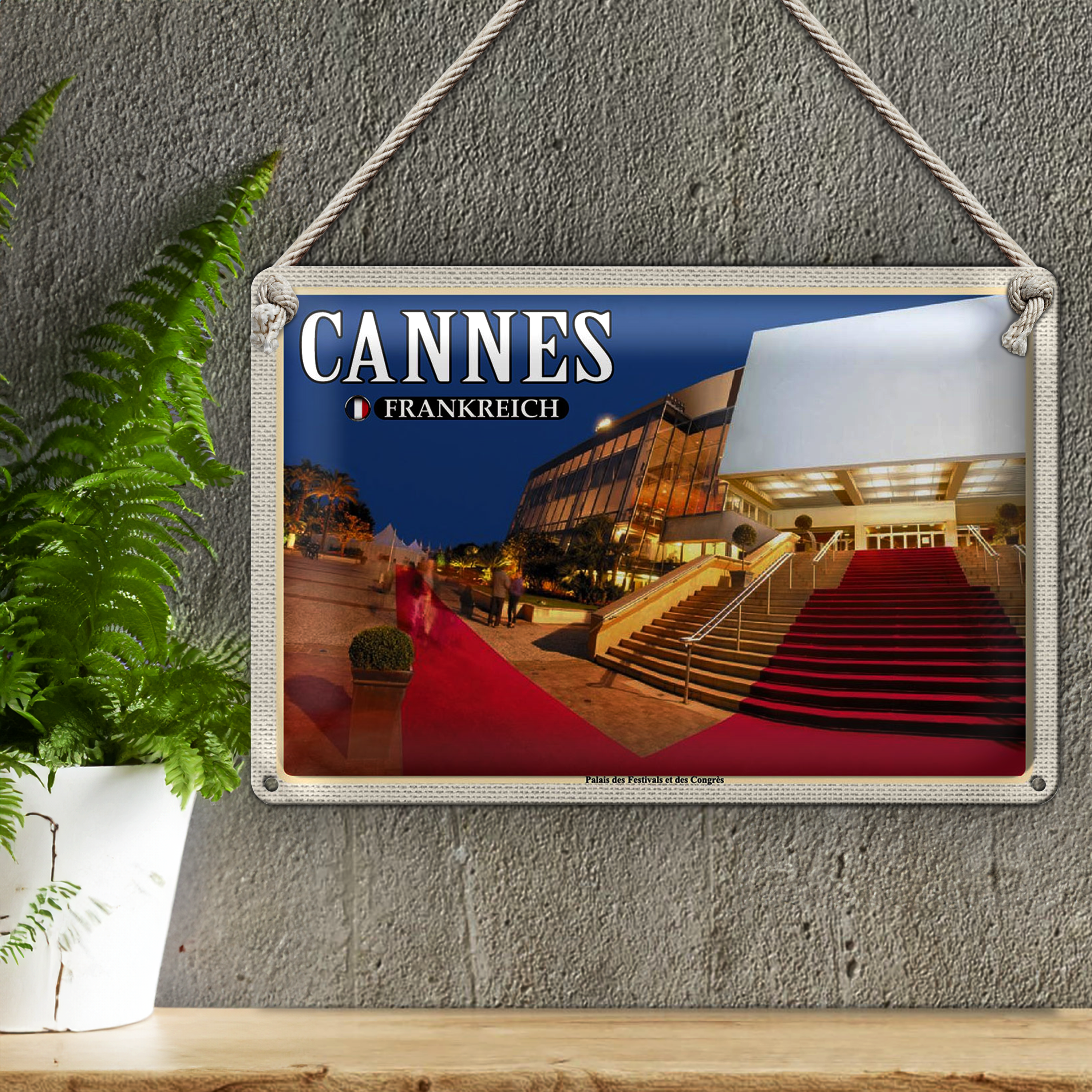 Blechschild Reise 30x20cm Cannes Frankreich Palais Festivals Congrès