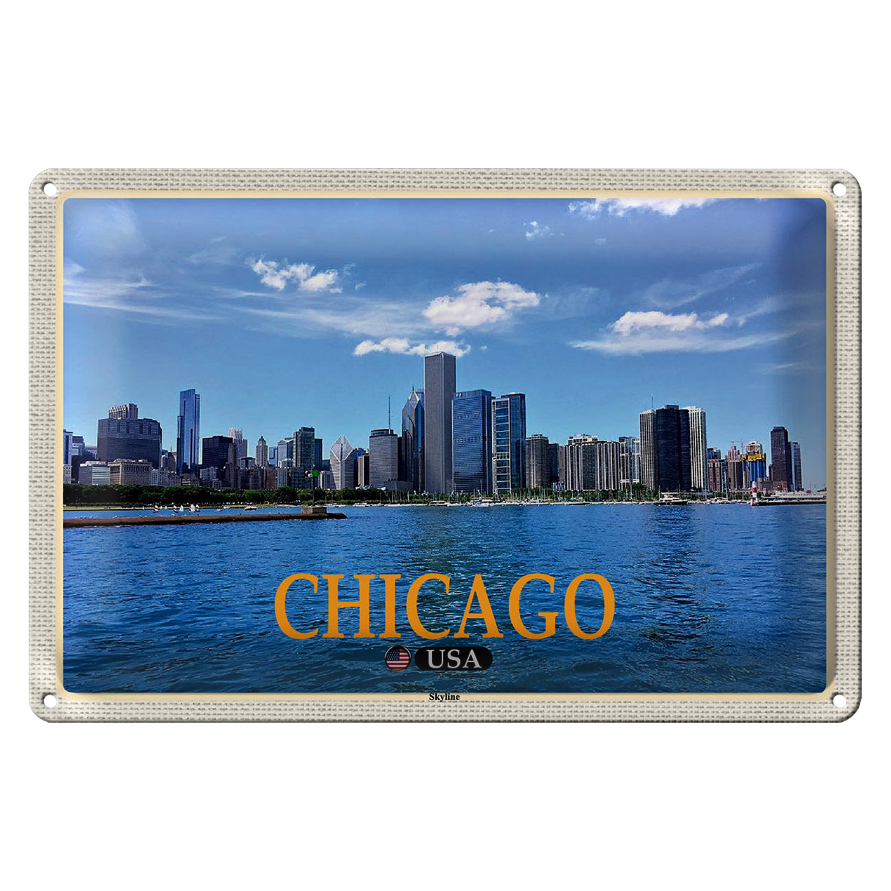 Blechschild Reise 30x20cm Chicago USA Skyline Hochhäuser