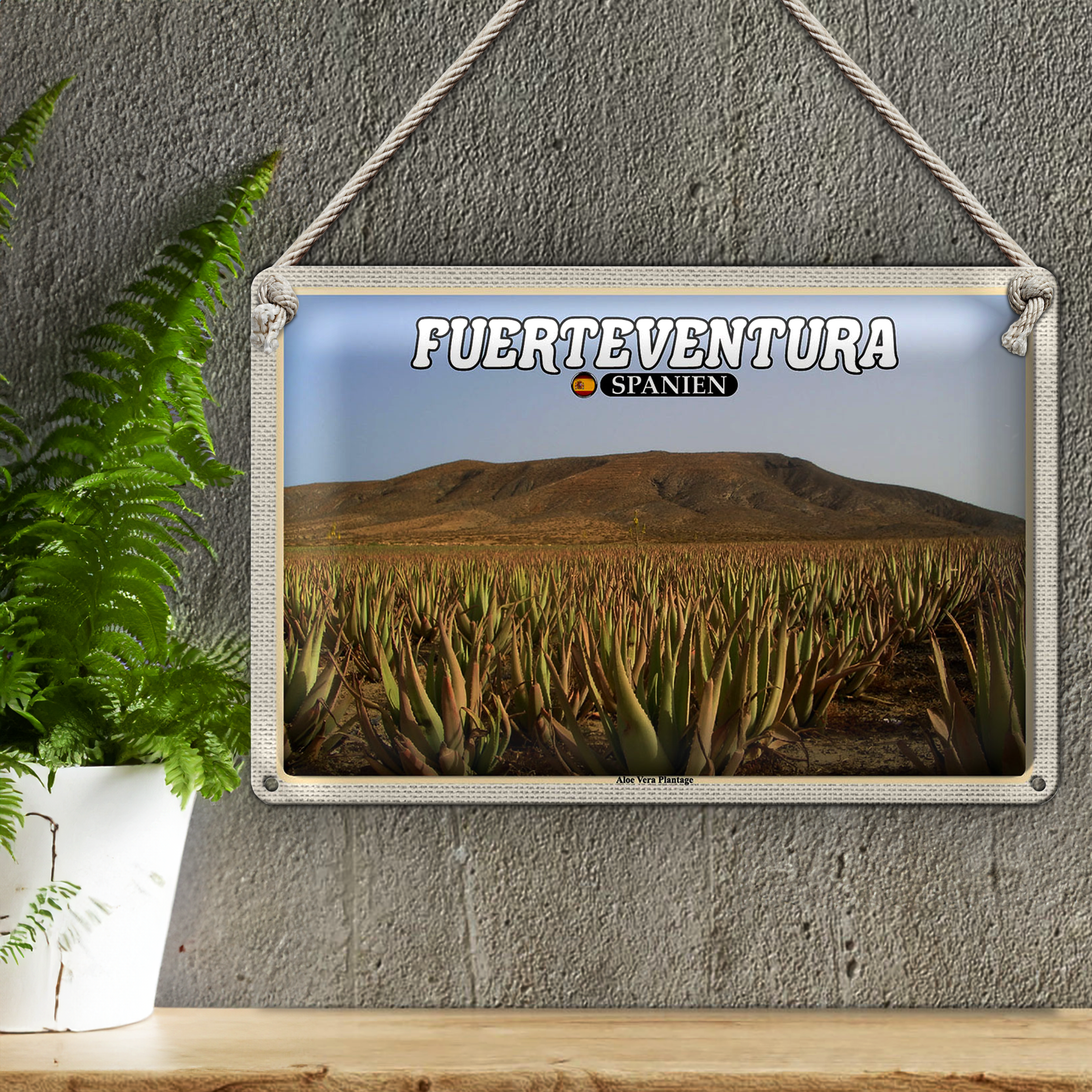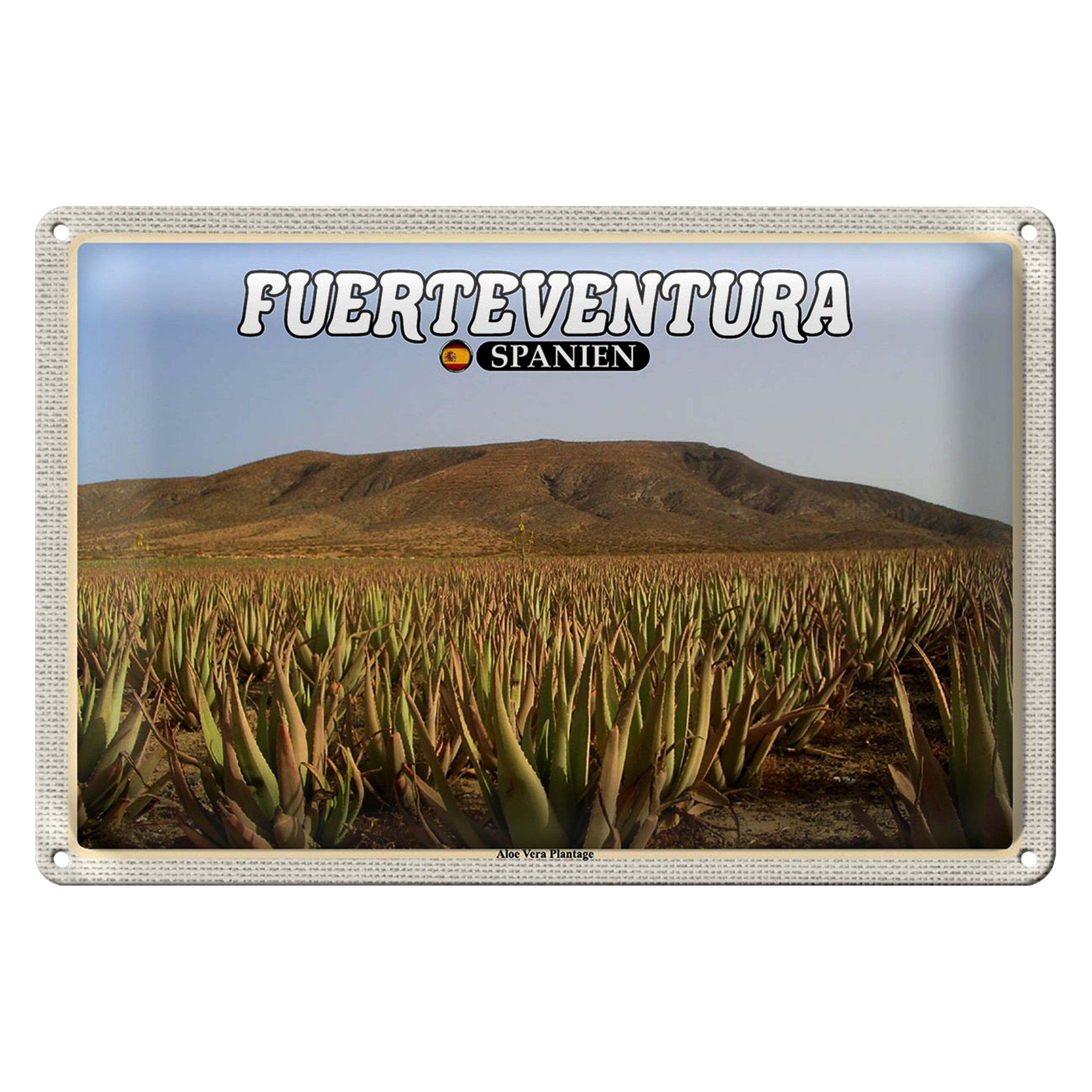 Blechschild Reise 30x20cm Fuerteventura Spanien Aloe Vera Plantage