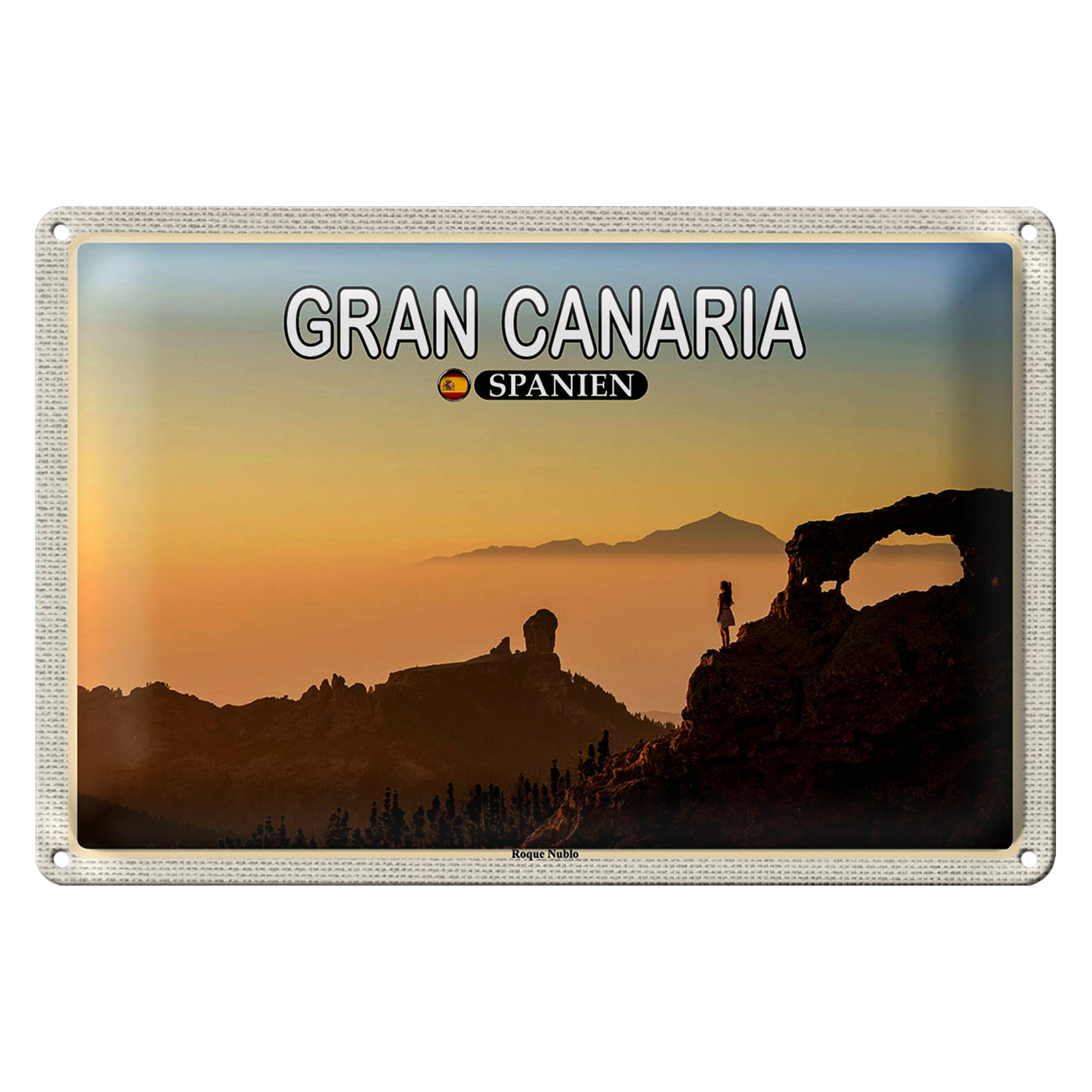 Blechschild Reise 30x20cm Gran Canaria Spanien Roque Nublo Berg