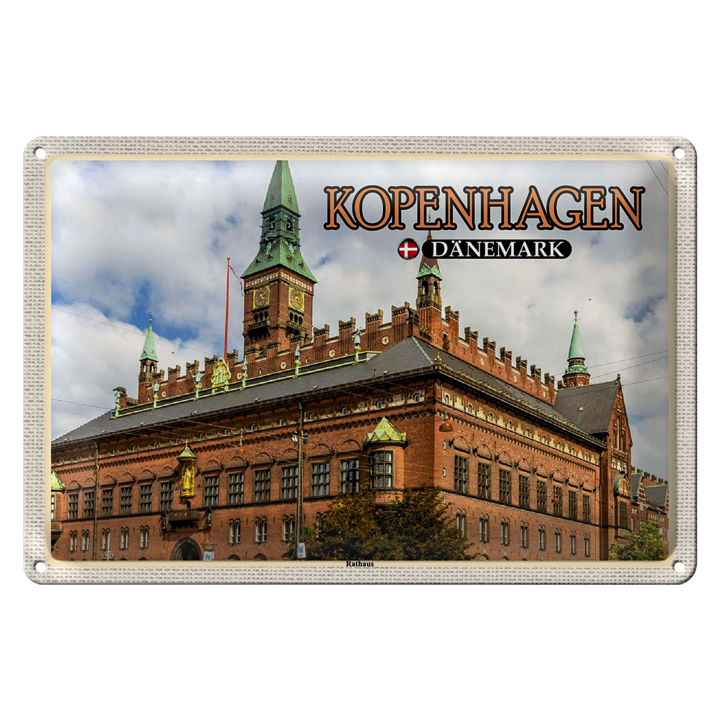 Blechschild Reise 30x20cm Kopenhagen Dänemark Rathaus