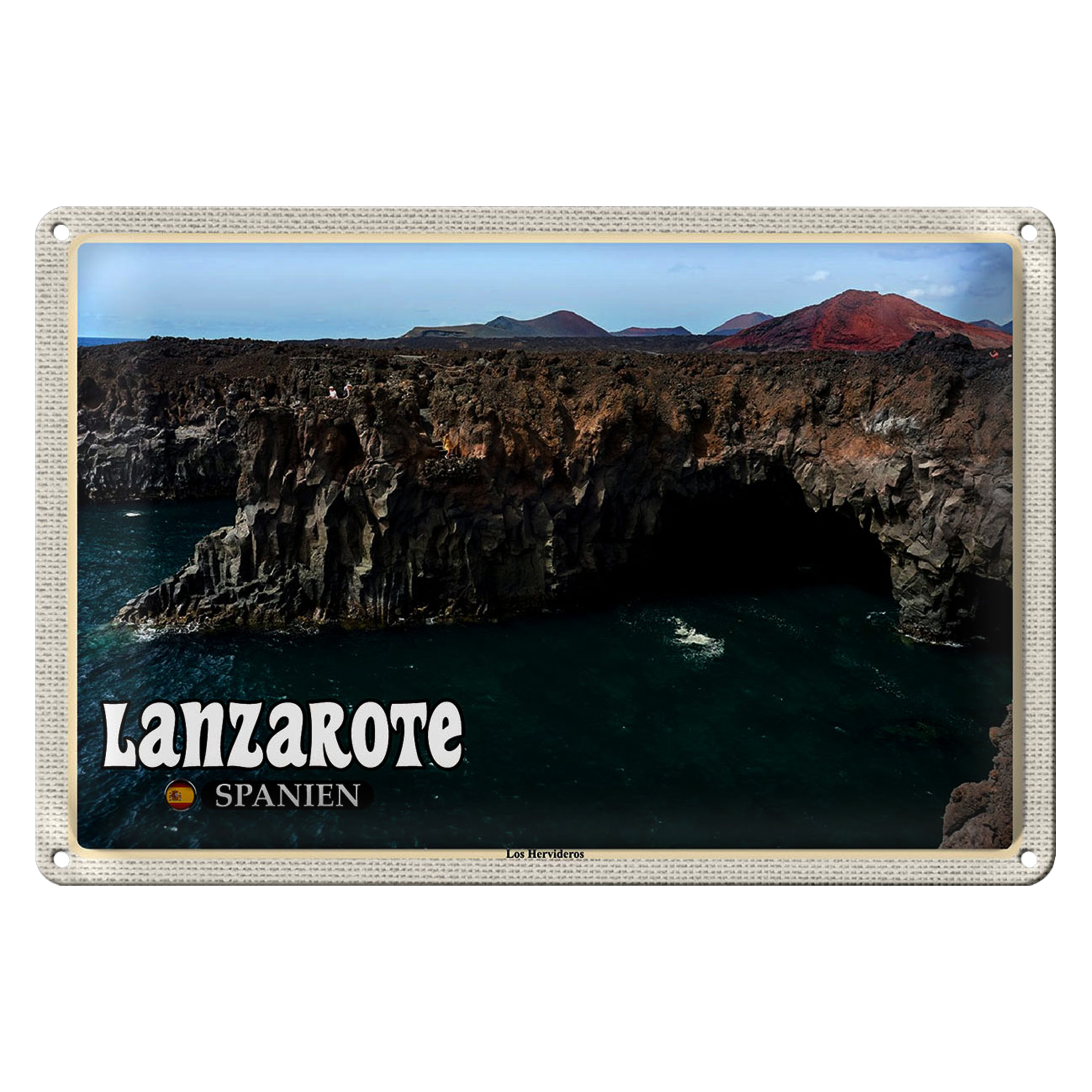 Blechschild Reise 30x20cm Lanzarote Spanien Los Hervideros Küste