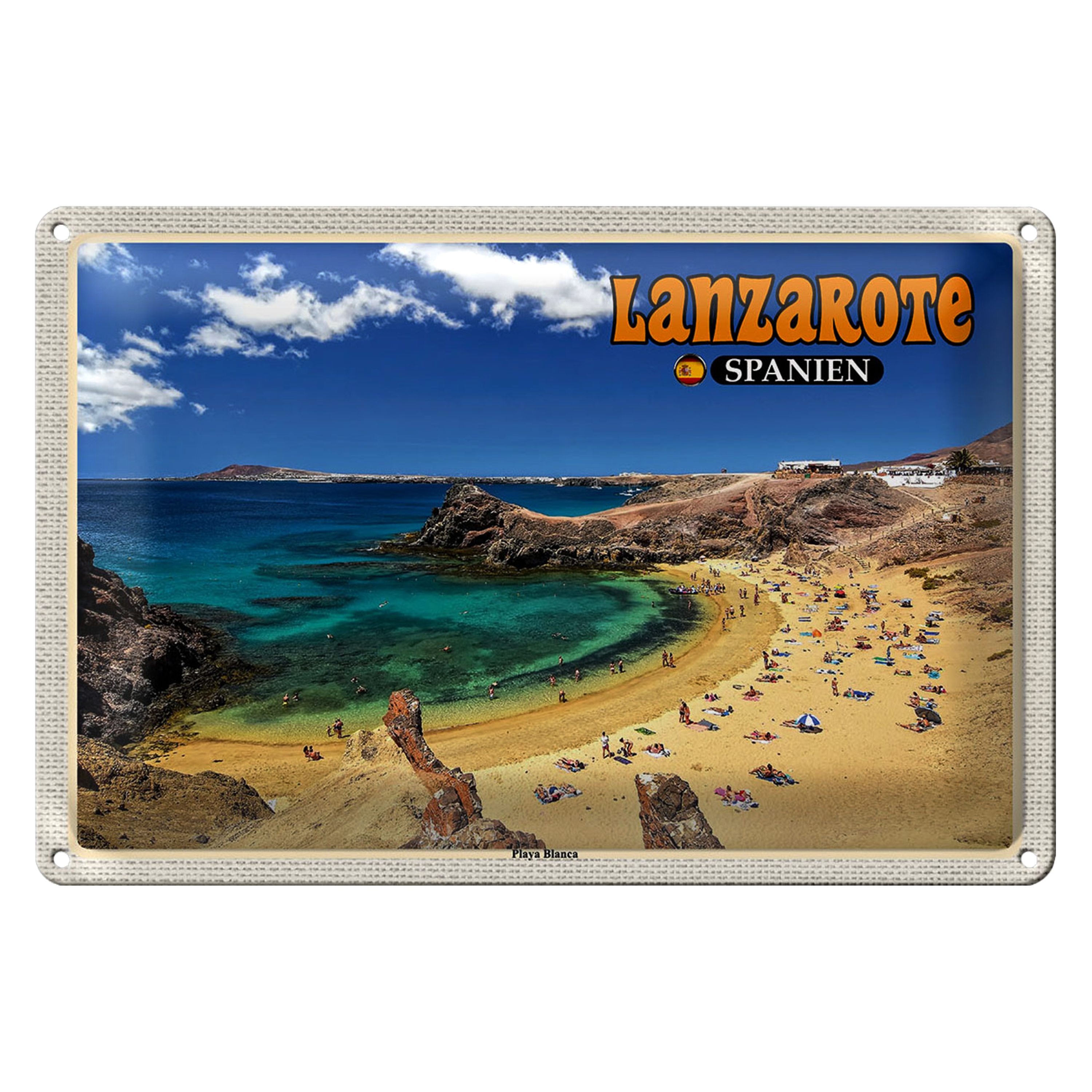 Blechschild Reise 30x20cm Lanzarote Spanien Playa Blanca Strand Meer