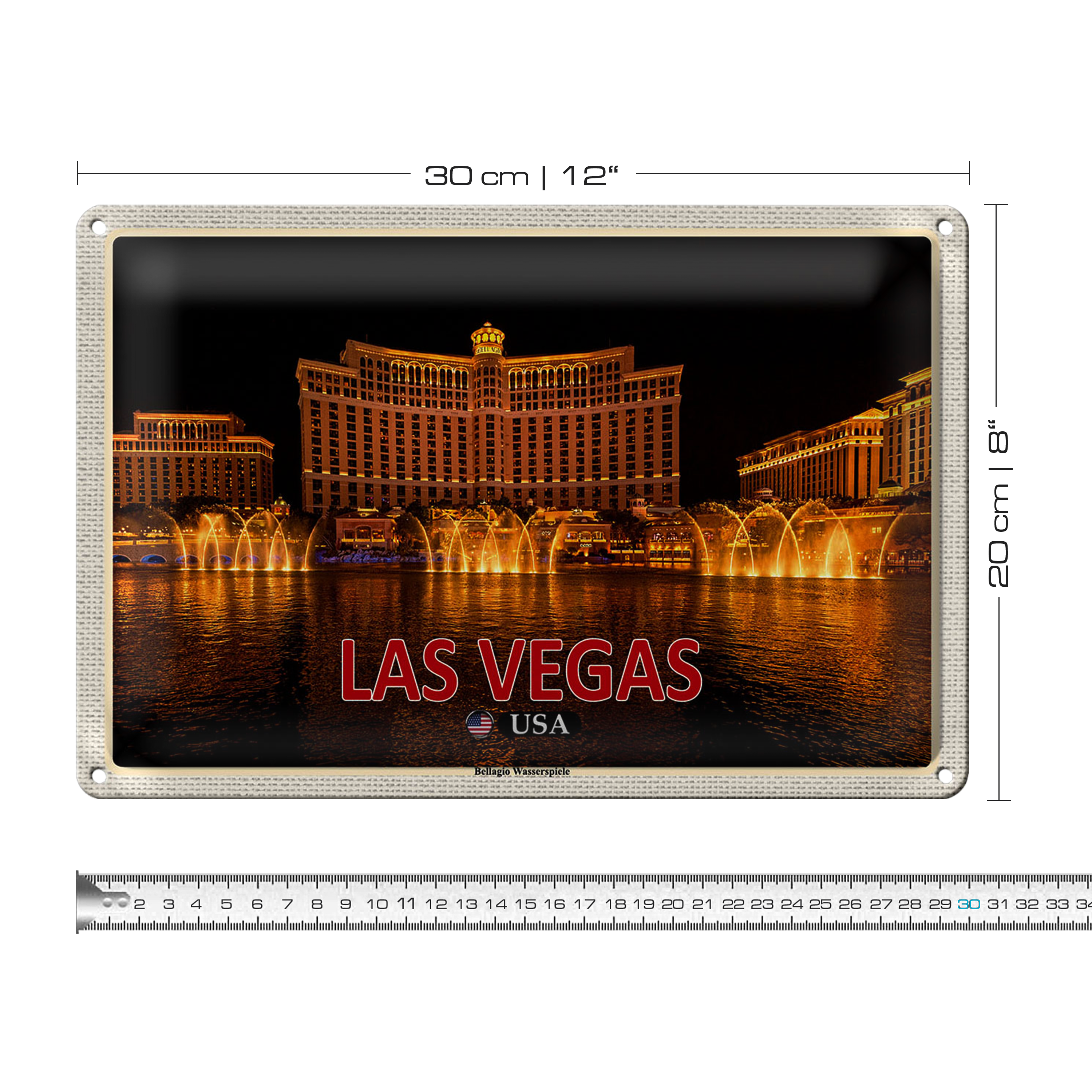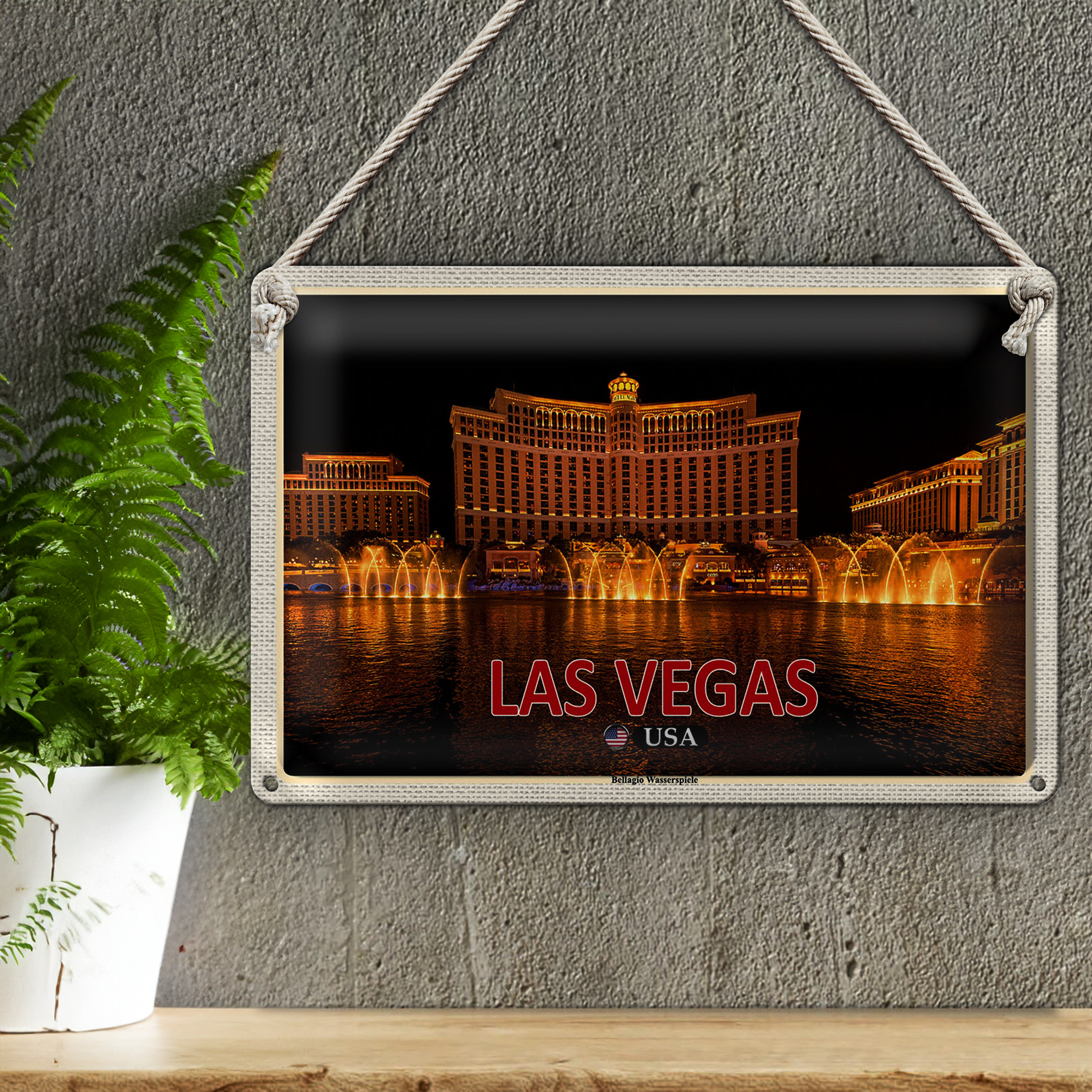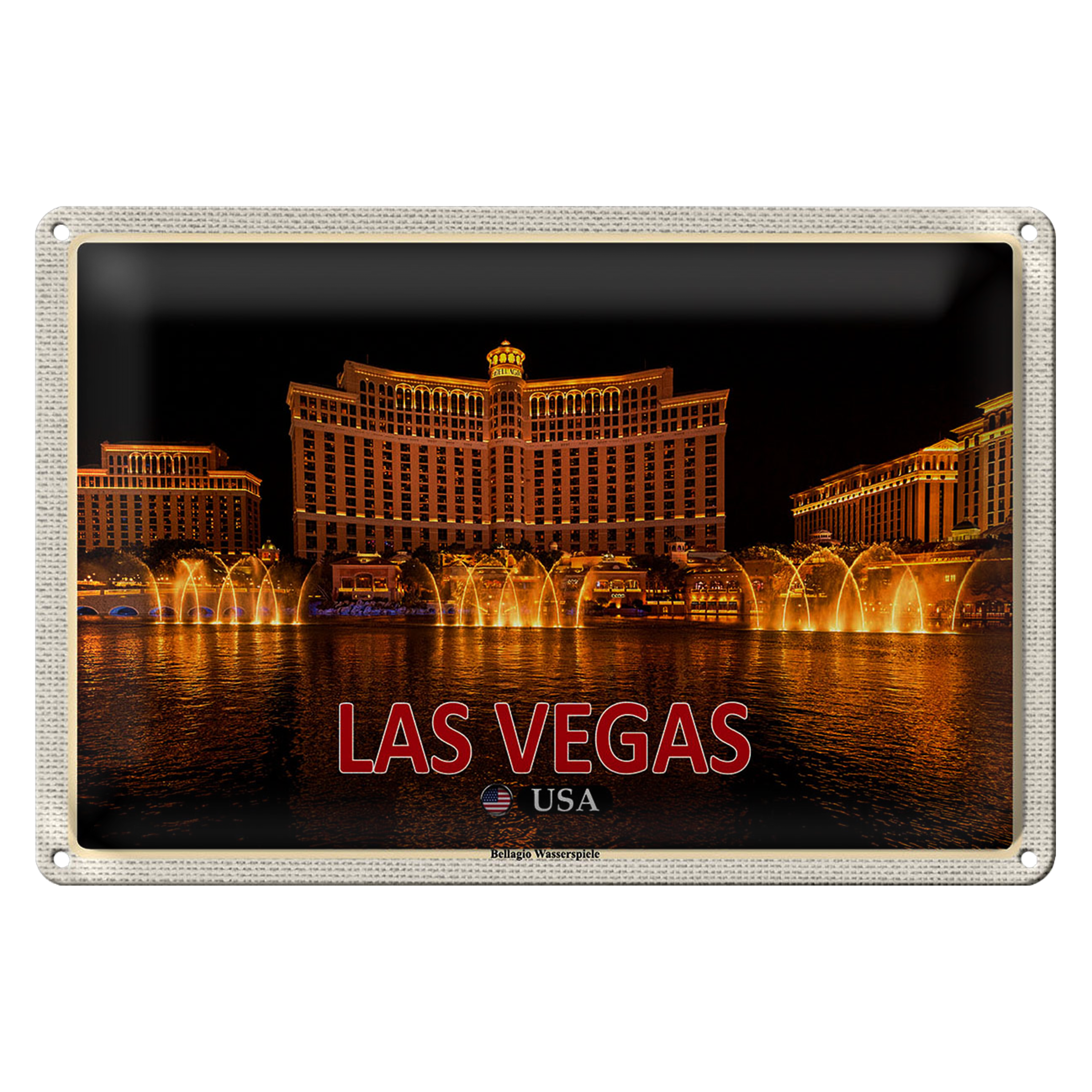 Blechschild Reise 30x20cm Las Vegas USA Bellagio Wasserspiele