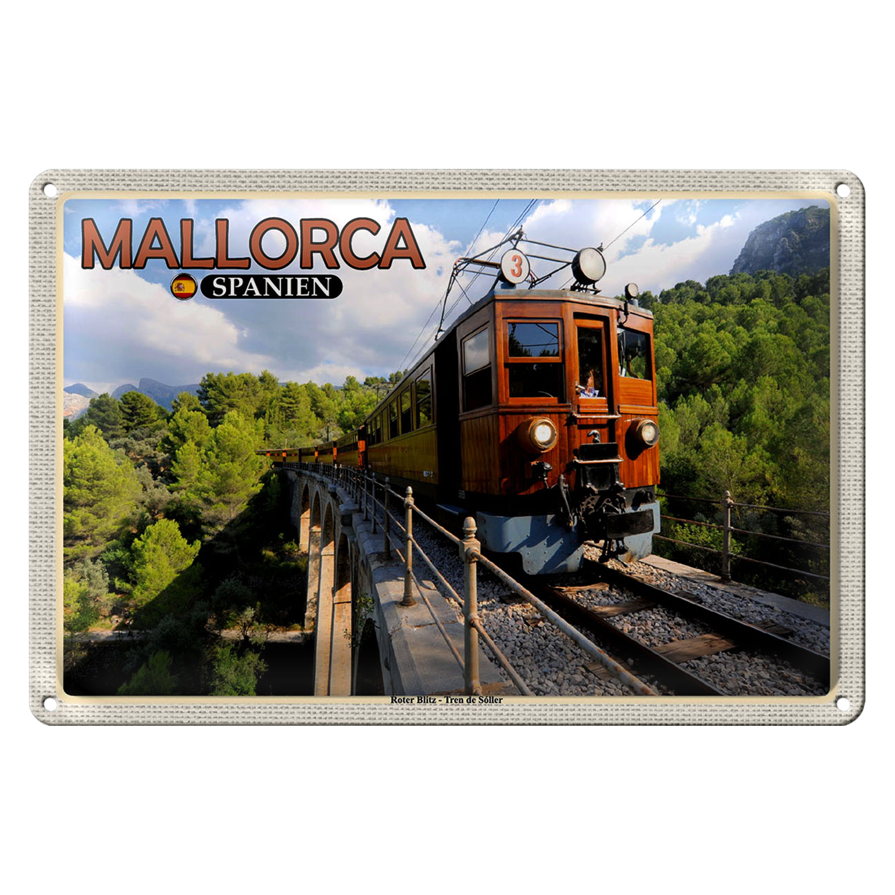 Blechschild Reise 30x20cm Mallorca Spanien Roter Blitz Tren Sóller